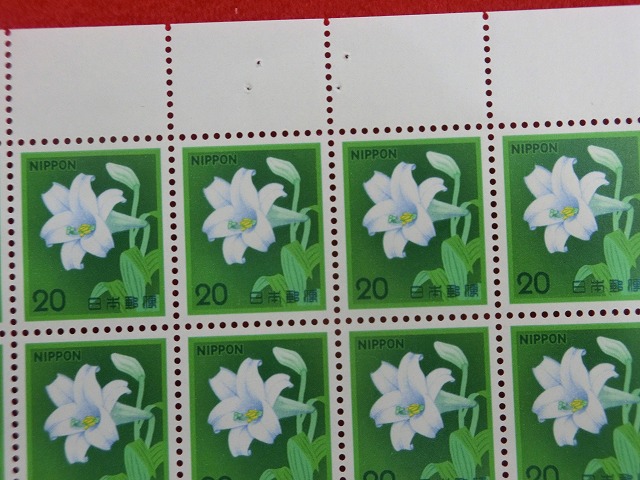 -----------------------商品説明-----------------------■品物 20円切手 ゆり 普通切手 100枚シート 花・貝・文化財 未使用 ■状態 美品 ※完品 折り目、汚れ、ホッチキス跡などがない、とても綺麗なお品。 ※美品 パッと見て綺麗なお品ですが、中央の折り目やホッチキスの跡、目立たないシミなどが有る場合があります。 ※並品 パッと見で、汚れ等があるお品。 ■カラーマーク シリーズや発売時期により、カラーマークの有無や、場所などが異なりますが、 当店では選べません。 ■在庫 在庫については、店舗販売もしておりますので、 ご注文頂いた全てをご用意できない場合もございます。 カートに在庫がない場合にもお問い合わせいただければご相談をお受けいたします。 ■切手の種類 □普通切手とは 現在郵便局で普通切手とし販売されている物です。通常切手とも言われてます。 □記念切手とは 過去に販売された特殊切手・ふるさと切手・グリーティング切手、旧普通切手です。 □別納用切手 郵便局へのお支払いに、現金の代わりに切手でお支払いできる切手(別納用)です。 料金別納郵便、料金受取人払い、ゆうパック、国際郵便EMSのコスト削減に利用できます。 □別納用切手 台紙貼り A3サイズコピー用紙に別納用切手を貼ったものです。切 ■普通切手の歴史 日本最初の切手は竜切手 国家元首の肖像を意匠とすることの多い世界的傾向とは異なり、 天皇の肖像を意匠としたことはないが、 天皇の身代わりとして明治から昭和にかけての高額普通切手の意匠に神功皇后の肖像が採用されたことはある。 これには明治天皇の意向が反映されているといわれている。 明治初期に紙幣と切手製造の基礎を構築した、イタリア人技術者エドアルド・キヨッソーネは、 日本も紙幣や切手に国家元首の肖像(御真影。これ自体、彼の手になる肖像画を、 写真撮影したものである。)を使うのが妥当であるとしていた。 しかし、明治天皇が生来の写真嫌いで拒否されたという。 天皇が神格化されたこともあって、天皇を切手の意匠とするのはタブーとされるようになった。 以降、日本では記念・特殊切手も含めて在位中の天皇が切手の意匠になったことはない。 明治から昭和初期にかけては証票的な意匠となっていたが、 それ以降は徐々に具体的なモチーフを意匠とすることが多くなった。 第二次世界大戦中には逓信省も戦意昂揚の一翼を担い、大東亜共栄圏の地図や戦闘機、 少年航空兵、靖国神社など国家主義的、軍国主義的な意匠となった。 戦後は一転して産業、風景、動植物、文化財を意匠とするようになった。 このような事情を踏まえた切手収集家による分類方法が確立している(後述)。 なお、「昭和」「平成」といった元号名が含まれるシリーズ名があるが、 改元は普通切手のシリーズ変更と直接の関係はないため、 普通切手シリーズの発売期間は必ずしも時代ごとの区分と一致しない。 現在、郵便事業を担う日本郵便の発行する普通切手のテーマは 「日本の自然」であり、日本国内に生息する鳥類や花や昆虫を意匠としている。 日本切手カタログ(さくら日本切手カタログ・日本切手専門カタログ・ビジュアル日本切手カタログ)には 「平成切手」というシリーズ名称で収録されており、切手収集家の間でも使用されている。 ◇日本の切手の有効性 下記以外の切手は、たとえ銭位・厘位であっても無効を定めた法令がないため、 現在でも使用可能である。 したがって現在有効な最古の切手は1876年(明治9年)発行の5厘切手(旧小判切手)である。 なお銭は円の百分の一、厘は銭の十分の一である。 手彫切手(竜文切手、竜銭切手、桜切手及び鳥切手)と 旧小判切手(5厘を除く)は法令により1889年12月1日以降使用禁止となった。 「第一回国勢調査紀念切手」(1920年9月25日発売)は発売開始当初から有効期限(1921年3月31日迄)が定められていた。 第二次世界大戦後、GHQから軍国主義的あるいは神道等の象徴に関係があると みなされた切手や葉書(いわゆる追放切手)は法令[8]により1947年9月1日以降使用禁止となった。 これらは現在でも東京中央郵便局で現行の有効な切手および葉書に引き換えることができる。 ■日本の普通切手の一覧 □竜文切手 1871年 日本最初の切手、通貨制度が江戸時代と同じだったため額面が「文」表示。 目打が無く、裏面に糊もついていなかった。 □竜銭切手 1872年 通貨制度近代化により額面が「銭」表示となる。初めて目打が入れられたのもこの切手からである。 □桜切手 1872年 - 1876年 四隅に桜花をあしらっていたことに由来する名称。 途中から在庫管理のため、印面にカナが加えられた。 また、民間の印刷会社である松田印刷が印刷を担ったシリーズも存在する。 カナを含め、数多くのバリエーションがあり、日本切手の収集家の人気が最も高いシリーズである。 この切手の途中から、政府のみが切手の印刷を行うようになる。 このシリーズから切手に菊花紋章を表示するようになった。 □鳥切手 1875年 外国