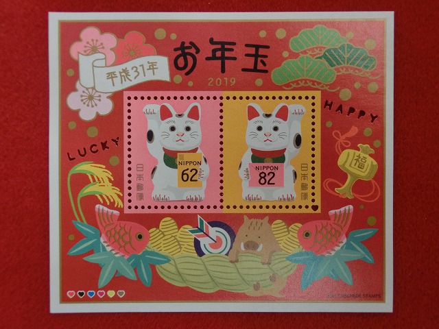 トップページ > 年賀切手 > 平成31年 62円 82円 お年玉小型シート 招き猫 年賀切手