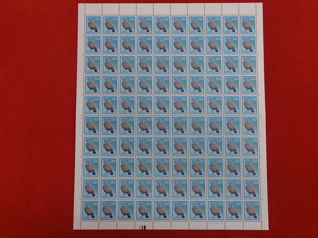 -----------------------商品説明-----------------------■品物 62円切手 キジバト 普通切手 100枚シート ■状態 美品 ※完品 折り目、汚れ、ホッチキス跡などがない、とても綺麗なお品。 ※美品 パッと見て綺麗なお品ですが、中央の折り目やホッチキスの跡、目立たないシミなどが有る場合があります。 ※並品 パッと見で、汚れ等があるお品。 ■カラーマーク シリーズや発売時期により、カラーマークの有無や、場所などが異なりますが、 当店では選べません。 ■在庫 在庫については、店舗販売もしておりますので、 ご注文頂いた全てをご用意できない場合もございます。 カートに在庫がない場合にもお問い合わせいただければご相談をお受けいたします。 ■切手の種類 □普通切手とは 現在郵便局で普通切手とし販売されている物です。通常切手とも言われてます。 □記念切手とは 過去に販売された特殊切手・ふるさと切手・グリーティング切手、旧普通切手です。 □別納用切手 郵便局へのお支払いに、現金の代わりに切手でお支払いできる切手(別納用)です。 料金別納郵便、料金受取人払い、ゆうパック、国際郵便EMSのコスト削減に利用できます。 □別納用切手 台紙貼り A3サイズコピー用紙に別納用切手を貼ったものです。切 ■普通切手の歴史 日本最初の切手は竜切手 国家元首の肖像を意匠とすることの多い世界的傾向とは異なり、 天皇の肖像を意匠としたことはないが、 天皇の身代わりとして明治から昭和にかけての高額普通切手の意匠に神功皇后の肖像が採用されたことはある。 これには明治天皇の意向が反映されているといわれている。 明治初期に紙幣と切手製造の基礎を構築した、イタリア人技術者エドアルド・キヨッソーネは、 日本も紙幣や切手に国家元首の肖像(御真影。これ自体、彼の手になる肖像画を、 写真撮影したものである。)を使うのが妥当であるとしていた。 しかし、明治天皇が生来の写真嫌いで拒否されたという。 天皇が神格化されたこともあって、天皇を切手の意匠とするのはタブーとされるようになった。 以降、日本では記念・特殊切手も含めて在位中の天皇が切手の意匠になったことはない。 明治から昭和初期にかけては証票的な意匠となっていたが、 それ以降は徐々に具体的なモチーフを意匠とすることが多くなった。 第二次世界大戦中には逓信省も戦意昂揚の一翼を担い、大東亜共栄圏の地図や戦闘機、 少年航空兵、靖国神社など国家主義的、軍国主義的な意匠となった。 戦後は一転して産業、風景、動植物、文化財を意匠とするようになった。 このような事情を踏まえた切手収集家による分類方法が確立している(後述)。 なお、「昭和」「平成」といった元号名が含まれるシリーズ名があるが、 改元は普通切手のシリーズ変更と直接の関係はないため、 普通切手シリーズの発売期間は必ずしも時代ごとの区分と一致しない。 現在、郵便事業を担う日本郵便の発行する普通切手のテーマは 「日本の自然」であり、日本国内に生息する鳥類や花や昆虫を意匠としている。 日本切手カタログ(さくら日本切手カタログ・日本切手専門カタログ・ビジュアル日本切手カタログ)には 「平成切手」というシリーズ名称で収録されており、切手収集家の間でも使用されている。 ◇日本の切手の有効性 下記以外の切手は、たとえ銭位・厘位であっても無効を定めた法令がないため、 現在でも使用可能である。 したがって現在有効な最古の切手は1876年(明治9年)発行の5厘切手(旧小判切手)である。 なお銭は円の百分の一、厘は銭の十分の一である。 手彫切手(竜文切手、竜銭切手、桜切手及び鳥切手)と 旧小判切手(5厘を除く)は法令により1889年12月1日以降使用禁止となった。 「第一回国勢調査紀念切手」(1920年9月25日発売)は発売開始当初から有効期限(1921年3月31日迄)が定められていた。 第二次世界大戦後、GHQから軍国主義的あるいは神道等の象徴に関係があると みなされた切手や葉書(いわゆる追放切手)は法令[8]により1947年9月1日以降使用禁止となった。 これらは現在でも東京中央郵便局で現行の有効な切手および葉書に引き換えることができる。 ■日本の普通切手の一覧 □竜文切手 1871年 日本最初の切手、通貨制度が江戸時代と同じだったため額面が「文」表示。 目打が無く、裏面に糊もついていなかった。 □竜銭切手 1872年 通貨制度近代化により額面が「銭」表示となる。初めて目打が入れられたのもこの切手からである。 □桜切手 1872年 - 1876年 四隅に桜花をあしらっていたことに由来する名称。 途中から在庫管理のため、印面にカナが加えられた。 また、民間の印刷会社である松田印刷が印刷を担ったシリーズも存在する。 カナを含め、数多くのバリエーションがあり、日本切手の収集家の人気が最も高いシリーズである。 この切手の途中から、政府のみが切手の印刷を行うようになる。 このシリーズから切手に菊花紋章を表示するようになった。 □鳥切手 1875年 外国郵便開業に伴い、
