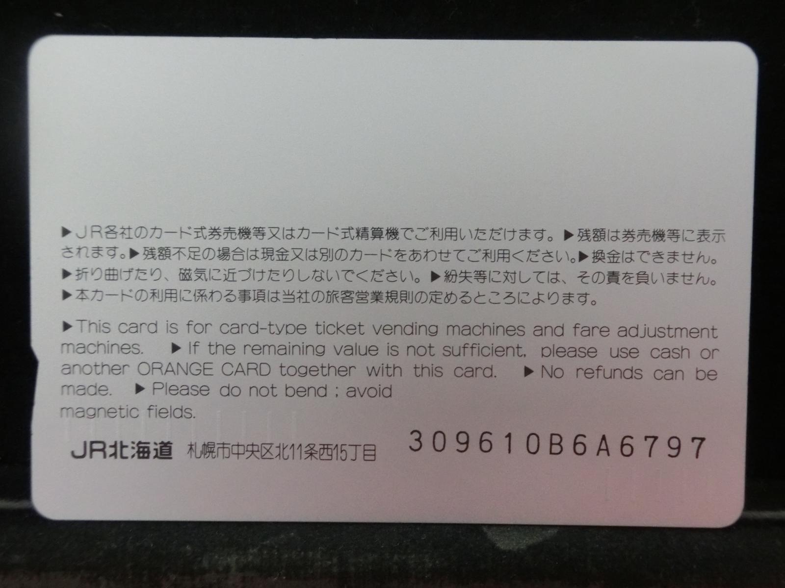 -----------------------商品説明-----------------------■品物 オレンジカード 未使用 ■額面 1000円 ■状態 画像をご確認ください。 ■在庫 在庫については、店舗販売もしておりますので、 ご注文頂いた全てをご用意できない場合もございます。 カートに在庫がない場合にもお問い合わせいただければご相談をお受けいたします。 ■オレンジカードとは JR各社で利用できる磁気式プリペイドカードである。略称でオレカとも呼ばれる。 日本国有鉄道(国鉄)時代の1985年3月25日に関東圏の主要駅で販売が開始されたのち、 全国で発売された。2013年3月31日限りで発売を終了した。 ◎概要 1971年(昭和46年)に研究と開発を開始。マルス105開発や国鉄経営難等もあって開発は数回中断している。 1984年(昭和59年)、JNRカードの開発と同時期に再度開発をスタート。 当時からICカード化にも意欲を見せていたが、この時は断念している。 開発プロジェクトのリーダーは、当初から須田寬(後に常務理事を経てJR東海の初代社長)が担当している。 オレンジカード対応の自動券売機で乗車券(切符)類の購入に利用できる。 また、オレンジカード対応の自動精算機や有人改札の窓口処理機で乗り越し精算にも利用できる。 もっとも、イオカード・Jスルーカード・ワイワイカード(以上いずれも発売終了)のように、 自動改札機に直接投入して自動精算することはできない。 JRの駅のみどりの窓口やカード発売機のほか、一部のデパートで購入することができた。 また、JRの一部特急列車でもオレンジカード発売の案内放送があれば車掌から購入することが可能で、 その中には車内販売限定オリジナルデザインのものもあった。 新幹線のみが停車する山陽新幹線の新神戸駅、北陸新幹線の安中榛名駅や 東北新幹線のいわて沼宮内駅・二戸駅・八戸駅・七戸十和田駅・東海道新幹線の新富士駅、 在来線の無人駅およびみどりの窓口非設置駅では、オレンジカード対応の自動券売機が設置されていないため、 オレンジカードを使用しての乗車券類の購入はできない。 ただし、新幹線のみが停車する軽井沢駅・上田駅・上毛高原駅や、一部のみどりの窓口非設置駅などでは、 オレンジカード対応の自動券売機が設置されている場合がある。 無人駅が多い鶴見線や青梅線の各駅にもオレンジカード対応の自動券売機が設置されていたが、 鶴見線は鶴見駅を除く全駅が2022年2月28日に、 青梅線は一部の駅を除き2017年から2018年にかけて自動券売機が撤去され、利用ができなくなった。 みどりの窓口設置駅でありながら他社管理駅である小諸駅(しなの鉄道管理駅)、 八戸駅(在来線は青い森鉄道管理駅)と自動券売機非設置の左沢駅などでは使用することができない。 オレンジカードで購入した乗車券類は、みどりの窓口[注 2]で乗車変更の取り扱いが可能である。 他の乗車カード類の場合も共通するが、 オレンジカードで他のオレンジカードや他のJRの磁気式乗車カード(イオカード)などを購入したり、 Suica・ICOCA・TOICA・Kitaca・SUGOCAのJRの 非接触型ICカードを購入したりチャージ(現金積み増し)したりすることはできない。 また車内精算で使用することもできない。 以前はクレジットカードでの購入も可能だったが、北海道旅客鉄道(JR北海道)では2003年6月20日から、 東日本旅客鉄道(JR東日本)では2005年ごろから(ビューカードは最後まで購入可能だった)、 JR九州、JR四国、JR西日本も段階的に購入が不可能となった。 これは、クレジットカードを盗んだ者がオレンジカードを購入、 金券ショップで換金することで現金を得るという不正行為を行っており、これを防ぐことが目的であった。 ◎発売終了 JR東日本の首都圏エリアでは1991年3月1日にイオカードが発売開始され、 そして2001年11月18日にSuicaの販売を開始した。 これらのカードは自動券売機で乗車券に引き換えることなくカード自体に対して 自動改札機による改札処理を行うことが可能でありオレンジカードに代わり普及し、 JR東日本ではオレンジカードの売上はピーク時の1991年には327億円あったが、 2006年には13億円に減少した。 また他のJR各社も1990年代以降、自社独自の磁気式ストアードフェアカードやICカードを発売開始している。 JR西日本(西日本旅客鉄道)では、新幹線単独駅に設置されている一部の券売機を除いてオレンジカードが使用可能であり、 在来線扱いの博多南線博多南駅でも使用できる。 ICOCA・Jスルーエリアの小規模の駅で取扱いをやめている。 一部の駅の出札窓口でも専用の処理機を使う事で利用することができた時期もある。 ただし、一部の駅ではオレンジカード対応券売機が設置されていない。 このため、オレンジカード対応の自動券売機が更新されないケースや、 オレンジカードを発売していない駅も出てきている。 しかし、当時ICOCAの導入予定を公式発表していなかった北陸地方と山口県内や山陰地方では、 2008年頃まで記念カードも発行されていた。 また、2011年頃でも、JR北海道[注 3]とJR四国[