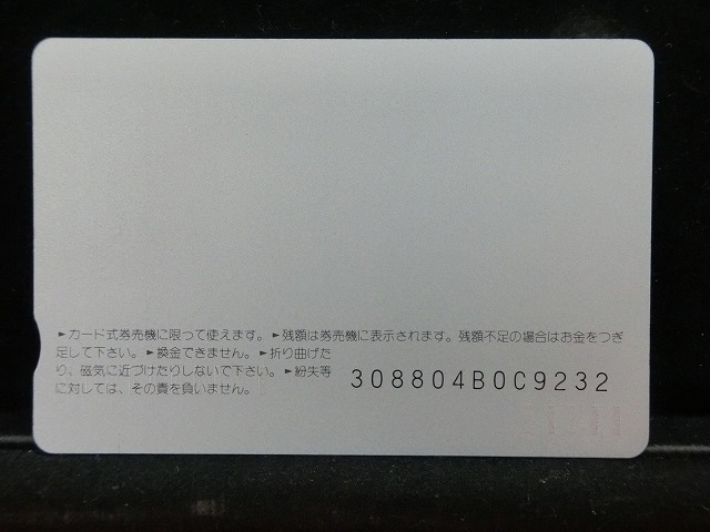 -----------------------商品説明-----------------------■品物 オレンジカード 未使用 ■額面 1000円 ■状態 画像をご確認ください。 ■在庫 在庫については、店舗販売もしておりますので、 ご注文頂いた全てをご用意できない場合もございます。 カートに在庫がない場合にもお問い合わせいただければご相談をお受けいたします。 ■オレンジカードとは JR各社で利用できる磁気式プリペイドカードである。略称でオレカとも呼ばれる。 日本国有鉄道(国鉄)時代の1985年3月25日に関東圏の主要駅で販売が開始されたのち、 全国で発売された。2013年3月31日限りで発売を終了した。 ◎概要 1971年(昭和46年)に研究と開発を開始。マルス105開発や国鉄経営難等もあって開発は数回中断している。 1984年(昭和59年)、JNRカードの開発と同時期に再度開発をスタート。 当時からICカード化にも意欲を見せていたが、この時は断念している。 開発プロジェクトのリーダーは、当初から須田寬(後に常務理事を経てJR東海の初代社長)が担当している。 オレンジカード対応の自動券売機で乗車券(切符)類の購入に利用できる。 また、オレンジカード対応の自動精算機や有人改札の窓口処理機で乗り越し精算にも利用できる。 もっとも、イオカード・Jスルーカード・ワイワイカード(以上いずれも発売終了)のように、 自動改札機に直接投入して自動精算することはできない。 JRの駅のみどりの窓口やカード発売機のほか、一部のデパートで購入することができた。 また、JRの一部特急列車でもオレンジカード発売の案内放送があれば車掌から購入することが可能で、 その中には車内販売限定オリジナルデザインのものもあった。 新幹線のみが停車する山陽新幹線の新神戸駅、北陸新幹線の安中榛名駅や 東北新幹線のいわて沼宮内駅・二戸駅・八戸駅・七戸十和田駅・東海道新幹線の新富士駅、 在来線の無人駅およびみどりの窓口非設置駅では、オレンジカード対応の自動券売機が設置されていないため、 オレンジカードを使用しての乗車券類の購入はできない。 ただし、新幹線のみが停車する軽井沢駅・上田駅・上毛高原駅や、一部のみどりの窓口非設置駅などでは、 オレンジカード対応の自動券売機が設置されている場合がある。 無人駅が多い鶴見線や青梅線の各駅にもオレンジカード対応の自動券売機が設置されていたが、 鶴見線は鶴見駅を除く全駅が2022年2月28日に、 青梅線は一部の駅を除き2017年から2018年にかけて自動券売機が撤去され、利用ができなくなった。 みどりの窓口設置駅でありながら他社管理駅である小諸駅(しなの鉄道管理駅)、 八戸駅(在来線は青い森鉄道管理駅)と自動券売機非設置の左沢駅などでは使用することができない。 オレンジカードで購入した乗車券類は、みどりの窓口[注 2]で乗車変更の取り扱いが可能である。 他の乗車カード類の場合も共通するが、 オレンジカードで他のオレンジカードや他のJRの磁気式乗車カード(イオカード)などを購入したり、 Suica・ICOCA・TOICA・Kitaca・SUGOCAのJRの 非接触型ICカードを購入したりチャージ(現金積み増し)したりすることはできない。 また車内精算で使用することもできない。 以前はクレジットカードでの購入も可能だったが、北海道旅客鉄道(JR北海道)では2003年6月20日から、 東日本旅客鉄道(JR東日本)では2005年ごろから(ビューカードは最後まで購入可能だった)、 JR九州、JR四国、JR西日本も段階的に購入が不可能となった。 これは、クレジットカードを盗んだ者がオレンジカードを購入、 金券ショップで換金することで現金を得るという不正行為を行っており、これを防ぐことが目的であった。 ◎発売終了 JR東日本の首都圏エリアでは1991年3月1日にイオカードが発売開始され、 そして2001年11月18日にSuicaの販売を開始した。 これらのカードは自動券売機で乗車券に引き換えることなくカード自体に対して 自動改札機による改札処理を行うことが可能でありオレンジカードに代わり普及し、 JR東日本ではオレンジカードの売上はピーク時の1991年には327億円あったが、 2006年には13億円に減少した。 また他のJR各社も1990年代以降、自社独自の磁気式ストアードフェアカードやICカードを発売開始している。 JR西日本(西日本旅客鉄道)では、新幹線単独駅に設置されている一部の券売機を除いてオレンジカードが使用可能であり、 在来線扱いの博多南線博多南駅でも使用できる。 ICOCA・Jスルーエリアの小規模の駅で取扱いをやめている。 一部の駅の出札窓口でも専用の処理機を使う事で利用することができた時期もある。 ただし、一部の駅ではオレンジカード対応券売機が設置されていない。 このため、オレンジカード対応の自動券売機が更新されないケースや、 オレンジカードを発売していない駅も出てきている。 しかし、当時ICOCAの導入予定を公式発表していなかった北陸地方と山口県内や山陰地方では、 2008年頃まで記念カードも発行されていた。 また、2011年頃でも、JR北海道[注 3]とJR四国[
