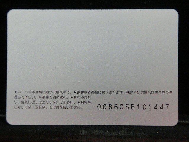 -----------------------商品説明-----------------------■品物 オレンジカード 未使用 ■額面 1000円 ■状態 画像をご確認ください。 ■在庫 在庫については、店舗販売もしておりますので、 ご注文頂いた全てをご用意できない場合もございます。 カートに在庫がない場合にもお問い合わせいただければご相談をお受けいたします。 ■オレンジカードとは JR各社で利用できる磁気式プリペイドカードである。略称でオレカとも呼ばれる。 日本国有鉄道(国鉄)時代の1985年3月25日に関東圏の主要駅で販売が開始されたのち、 全国で発売された。2013年3月31日限りで発売を終了した。 ◎概要 1971年(昭和46年)に研究と開発を開始。マルス105開発や国鉄経営難等もあって開発は数回中断している。 1984年(昭和59年)、JNRカードの開発と同時期に再度開発をスタート。 当時からICカード化にも意欲を見せていたが、この時は断念している。 開発プロジェクトのリーダーは、当初から須田寬(後に常務理事を経てJR東海の初代社長)が担当している。 オレンジカード対応の自動券売機で乗車券(切符)類の購入に利用できる。 また、オレンジカード対応の自動精算機や有人改札の窓口処理機で乗り越し精算にも利用できる。 もっとも、イオカード・Jスルーカード・ワイワイカード(以上いずれも発売終了)のように、 自動改札機に直接投入して自動精算することはできない。 JRの駅のみどりの窓口やカード発売機のほか、一部のデパートで購入することができた。 また、JRの一部特急列車でもオレンジカード発売の案内放送があれば車掌から購入することが可能で、 その中には車内販売限定オリジナルデザインのものもあった。 新幹線のみが停車する山陽新幹線の新神戸駅、北陸新幹線の安中榛名駅や 東北新幹線のいわて沼宮内駅・二戸駅・八戸駅・七戸十和田駅・東海道新幹線の新富士駅、 在来線の無人駅およびみどりの窓口非設置駅では、オレンジカード対応の自動券売機が設置されていないため、 オレンジカードを使用しての乗車券類の購入はできない。 ただし、新幹線のみが停車する軽井沢駅・上田駅・上毛高原駅や、一部のみどりの窓口非設置駅などでは、 オレンジカード対応の自動券売機が設置されている場合がある。 無人駅が多い鶴見線や青梅線の各駅にもオレンジカード対応の自動券売機が設置されていたが、 鶴見線は鶴見駅を除く全駅が2022年2月28日に、 青梅線は一部の駅を除き2017年から2018年にかけて自動券売機が撤去され、利用ができなくなった。 みどりの窓口設置駅でありながら他社管理駅である小諸駅(しなの鉄道管理駅)、 八戸駅(在来線は青い森鉄道管理駅)と自動券売機非設置の左沢駅などでは使用することができない。 オレンジカードで購入した乗車券類は、みどりの窓口[注 2]で乗車変更の取り扱いが可能である。 他の乗車カード類の場合も共通するが、 オレンジカードで他のオレンジカードや他のJRの磁気式乗車カード(イオカード)などを購入したり、 Suica・ICOCA・TOICA・Kitaca・SUGOCAのJRの 非接触型ICカードを購入したりチャージ(現金積み増し)したりすることはできない。 また車内精算で使用することもできない。 以前はクレジットカードでの購入も可能だったが、北海道旅客鉄道(JR北海道)では2003年6月20日から、 東日本旅客鉄道(JR東日本)では2005年ごろから(ビューカードは最後まで購入可能だった)、 JR九州、JR四国、JR西日本も段階的に購入が不可能となった。 これは、クレジットカードを盗んだ者がオレンジカードを購入、 金券ショップで換金することで現金を得るという不正行為を行っており、これを防ぐことが目的であった。 ◎発売終了 JR東日本の首都圏エリアでは1991年3月1日にイオカードが発売開始され、 そして2001年11月18日にSuicaの販売を開始した。 これらのカードは自動券売機で乗車券に引き換えることなくカード自体に対して 自動改札機による改札処理を行うことが可能でありオレンジカードに代わり普及し、 JR東日本ではオレンジカードの売上はピーク時の1991年には327億円あったが、 2006年には13億円に減少した。 また他のJR各社も1990年代以降、自社独自の磁気式ストアードフェアカードやICカードを発売開始している。 JR西日本(西日本旅客鉄道)では、新幹線単独駅に設置されている一部の券売機を除いてオレンジカードが使用可能であり、 在来線扱いの博多南線博多南駅でも使用できる。 ICOCA・Jスルーエリアの小規模の駅で取扱いをやめている。 一部の駅の出札窓口でも専用の処理機を使う事で利用することができた時期もある。 ただし、一部の駅ではオレンジカード対応券売機が設置されていない。 このため、オレンジカード対応の自動券売機が更新されないケースや、 オレンジカードを発売していない駅も出てきている。 しかし、当時ICOCAの導入予定を公式発表していなかった北陸地方と山口県内や山陰地方では、 2008年頃まで記念カードも発行されていた。 また、2011年頃でも、JR北海道[注 3]とJR四国[