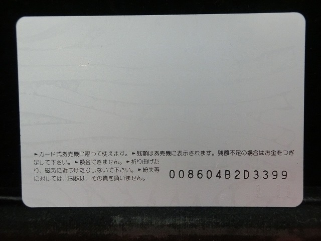 -----------------------商品説明-----------------------■品物 オレンジカード 未使用 ■額面 1000円 ■状態 画像をご確認ください。 ■在庫 在庫については、店舗販売もしておりますので、 ご注文頂いた全てをご用意できない場合もございます。 カートに在庫がない場合にもお問い合わせいただければご相談をお受けいたします。 ■オレンジカードとは JR各社で利用できる磁気式プリペイドカードである。略称でオレカとも呼ばれる。 日本国有鉄道(国鉄)時代の1985年3月25日に関東圏の主要駅で販売が開始されたのち、 全国で発売された。2013年3月31日限りで発売を終了した。 ◎概要 1971年(昭和46年)に研究と開発を開始。マルス105開発や国鉄経営難等もあって開発は数回中断している。 1984年(昭和59年)、JNRカードの開発と同時期に再度開発をスタート。 当時からICカード化にも意欲を見せていたが、この時は断念している。 開発プロジェクトのリーダーは、当初から須田寬(後に常務理事を経てJR東海の初代社長)が担当している。 オレンジカード対応の自動券売機で乗車券(切符)類の購入に利用できる。 また、オレンジカード対応の自動精算機や有人改札の窓口処理機で乗り越し精算にも利用できる。 もっとも、イオカード・Jスルーカード・ワイワイカード(以上いずれも発売終了)のように、 自動改札機に直接投入して自動精算することはできない。 JRの駅のみどりの窓口やカード発売機のほか、一部のデパートで購入することができた。 また、JRの一部特急列車でもオレンジカード発売の案内放送があれば車掌から購入することが可能で、 その中には車内販売限定オリジナルデザインのものもあった。 新幹線のみが停車する山陽新幹線の新神戸駅、北陸新幹線の安中榛名駅や 東北新幹線のいわて沼宮内駅・二戸駅・八戸駅・七戸十和田駅・東海道新幹線の新富士駅、 在来線の無人駅およびみどりの窓口非設置駅では、オレンジカード対応の自動券売機が設置されていないため、 オレンジカードを使用しての乗車券類の購入はできない。 ただし、新幹線のみが停車する軽井沢駅・上田駅・上毛高原駅や、一部のみどりの窓口非設置駅などでは、 オレンジカード対応の自動券売機が設置されている場合がある。 無人駅が多い鶴見線や青梅線の各駅にもオレンジカード対応の自動券売機が設置されていたが、 鶴見線は鶴見駅を除く全駅が2022年2月28日に、 青梅線は一部の駅を除き2017年から2018年にかけて自動券売機が撤去され、利用ができなくなった。 みどりの窓口設置駅でありながら他社管理駅である小諸駅(しなの鉄道管理駅)、 八戸駅(在来線は青い森鉄道管理駅)と自動券売機非設置の左沢駅などでは使用することができない。 オレンジカードで購入した乗車券類は、みどりの窓口[注 2]で乗車変更の取り扱いが可能である。 他の乗車カード類の場合も共通するが、 オレンジカードで他のオレンジカードや他のJRの磁気式乗車カード(イオカード)などを購入したり、 Suica・ICOCA・TOICA・Kitaca・SUGOCAのJRの 非接触型ICカードを購入したりチャージ(現金積み増し)したりすることはできない。 また車内精算で使用することもできない。 以前はクレジットカードでの購入も可能だったが、北海道旅客鉄道(JR北海道)では2003年6月20日から、 東日本旅客鉄道(JR東日本)では2005年ごろから(ビューカードは最後まで購入可能だった)、 JR九州、JR四国、JR西日本も段階的に購入が不可能となった。 これは、クレジットカードを盗んだ者がオレンジカードを購入、 金券ショップで換金することで現金を得るという不正行為を行っており、これを防ぐことが目的であった。 ◎発売終了 JR東日本の首都圏エリアでは1991年3月1日にイオカードが発売開始され、 そして2001年11月18日にSuicaの販売を開始した。 これらのカードは自動券売機で乗車券に引き換えることなくカード自体に対して 自動改札機による改札処理を行うことが可能でありオレンジカードに代わり普及し、 JR東日本ではオレンジカードの売上はピーク時の1991年には327億円あったが、 2006年には13億円に減少した。 また他のJR各社も1990年代以降、自社独自の磁気式ストアードフェアカードやICカードを発売開始している。 JR西日本(西日本旅客鉄道)では、新幹線単独駅に設置されている一部の券売機を除いてオレンジカードが使用可能であり、 在来線扱いの博多南線博多南駅でも使用できる。 ICOCA・Jスルーエリアの小規模の駅で取扱いをやめている。 一部の駅の出札窓口でも専用の処理機を使う事で利用することができた時期もある。 ただし、一部の駅ではオレンジカード対応券売機が設置されていない。 このため、オレンジカード対応の自動券売機が更新されないケースや、 オレンジカードを発売していない駅も出てきている。 しかし、当時ICOCAの導入予定を公式発表していなかった北陸地方と山口県内や山陰地方では、 2008年頃まで記念カードも発行されていた。 また、2011年頃でも、JR北海道[注 3]とJR四国[