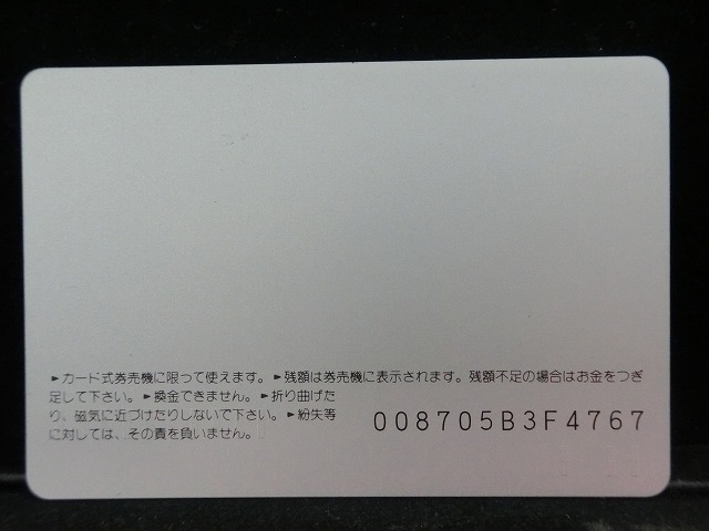 -----------------------商品説明-----------------------■品物 オレンジカード 未使用 ■額面 1000円 ■状態 画像をご確認ください。 ■在庫 在庫については、店舗販売もしておりますので、 ご注文頂いた全てをご用意できない場合もございます。 カートに在庫がない場合にもお問い合わせいただければご相談をお受けいたします。 ■オレンジカードとは JR各社で利用できる磁気式プリペイドカードである。略称でオレカとも呼ばれる。 日本国有鉄道(国鉄)時代の1985年3月25日に関東圏の主要駅で販売が開始されたのち、 全国で発売された。2013年3月31日限りで発売を終了した。 ◎概要 1971年(昭和46年)に研究と開発を開始。マルス105開発や国鉄経営難等もあって開発は数回中断している。 1984年(昭和59年)、JNRカードの開発と同時期に再度開発をスタート。 当時からICカード化にも意欲を見せていたが、この時は断念している。 開発プロジェクトのリーダーは、当初から須田寬(後に常務理事を経てJR東海の初代社長)が担当している。 オレンジカード対応の自動券売機で乗車券(切符)類の購入に利用できる。 また、オレンジカード対応の自動精算機や有人改札の窓口処理機で乗り越し精算にも利用できる。 もっとも、イオカード・Jスルーカード・ワイワイカード(以上いずれも発売終了)のように、 自動改札機に直接投入して自動精算することはできない。 JRの駅のみどりの窓口やカード発売機のほか、一部のデパートで購入することができた。 また、JRの一部特急列車でもオレンジカード発売の案内放送があれば車掌から購入することが可能で、 その中には車内販売限定オリジナルデザインのものもあった。 新幹線のみが停車する山陽新幹線の新神戸駅、北陸新幹線の安中榛名駅や 東北新幹線のいわて沼宮内駅・二戸駅・八戸駅・七戸十和田駅・東海道新幹線の新富士駅、 在来線の無人駅およびみどりの窓口非設置駅では、オレンジカード対応の自動券売機が設置されていないため、 オレンジカードを使用しての乗車券類の購入はできない。 ただし、新幹線のみが停車する軽井沢駅・上田駅・上毛高原駅や、一部のみどりの窓口非設置駅などでは、 オレンジカード対応の自動券売機が設置されている場合がある。 無人駅が多い鶴見線や青梅線の各駅にもオレンジカード対応の自動券売機が設置されていたが、 鶴見線は鶴見駅を除く全駅が2022年2月28日に、 青梅線は一部の駅を除き2017年から2018年にかけて自動券売機が撤去され、利用ができなくなった。 みどりの窓口設置駅でありながら他社管理駅である小諸駅(しなの鉄道管理駅)、 八戸駅(在来線は青い森鉄道管理駅)と自動券売機非設置の左沢駅などでは使用することができない。 オレンジカードで購入した乗車券類は、みどりの窓口[注 2]で乗車変更の取り扱いが可能である。 他の乗車カード類の場合も共通するが、 オレンジカードで他のオレンジカードや他のJRの磁気式乗車カード(イオカード)などを購入したり、 Suica・ICOCA・TOICA・Kitaca・SUGOCAのJRの 非接触型ICカードを購入したりチャージ(現金積み増し)したりすることはできない。 また車内精算で使用することもできない。 以前はクレジットカードでの購入も可能だったが、北海道旅客鉄道(JR北海道)では2003年6月20日から、 東日本旅客鉄道(JR東日本)では2005年ごろから(ビューカードは最後まで購入可能だった)、 JR九州、JR四国、JR西日本も段階的に購入が不可能となった。 これは、クレジットカードを盗んだ者がオレンジカードを購入、 金券ショップで換金することで現金を得るという不正行為を行っており、これを防ぐことが目的であった。 ◎発売終了 JR東日本の首都圏エリアでは1991年3月1日にイオカードが発売開始され、 そして2001年11月18日にSuicaの販売を開始した。 これらのカードは自動券売機で乗車券に引き換えることなくカード自体に対して 自動改札機による改札処理を行うことが可能でありオレンジカードに代わり普及し、 JR東日本ではオレンジカードの売上はピーク時の1991年には327億円あったが、 2006年には13億円に減少した。 また他のJR各社も1990年代以降、自社独自の磁気式ストアードフェアカードやICカードを発売開始している。 JR西日本(西日本旅客鉄道)では、新幹線単独駅に設置されている一部の券売機を除いてオレンジカードが使用可能であり、 在来線扱いの博多南線博多南駅でも使用できる。 ICOCA・Jスルーエリアの小規模の駅で取扱いをやめている。 一部の駅の出札窓口でも専用の処理機を使う事で利用することができた時期もある。 ただし、一部の駅ではオレンジカード対応券売機が設置されていない。 このため、オレンジカード対応の自動券売機が更新されないケースや、 オレンジカードを発売していない駅も出てきている。 しかし、当時ICOCAの導入予定を公式発表していなかった北陸地方と山口県内や山陰地方では、 2008年頃まで記念カードも発行されていた。 また、2011年頃でも、JR北海道[注 3]とJR四国[