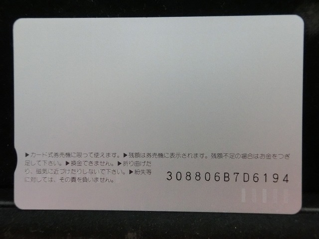 -----------------------商品説明-----------------------■品物 オレンジカード 未使用 ■額面 1000円 ■状態 画像をご確認ください。 ■在庫 在庫については、店舗販売もしておりますので、 ご注文頂いた全てをご用意できない場合もございます。 カートに在庫がない場合にもお問い合わせいただければご相談をお受けいたします。 ■オレンジカードとは JR各社で利用できる磁気式プリペイドカードである。略称でオレカとも呼ばれる。 日本国有鉄道(国鉄)時代の1985年3月25日に関東圏の主要駅で販売が開始されたのち、 全国で発売された。2013年3月31日限りで発売を終了した。 ◎概要 1971年(昭和46年)に研究と開発を開始。マルス105開発や国鉄経営難等もあって開発は数回中断している。 1984年(昭和59年)、JNRカードの開発と同時期に再度開発をスタート。 当時からICカード化にも意欲を見せていたが、この時は断念している。 開発プロジェクトのリーダーは、当初から須田寬(後に常務理事を経てJR東海の初代社長)が担当している。 オレンジカード対応の自動券売機で乗車券(切符)類の購入に利用できる。 また、オレンジカード対応の自動精算機や有人改札の窓口処理機で乗り越し精算にも利用できる。 もっとも、イオカード・Jスルーカード・ワイワイカード(以上いずれも発売終了)のように、 自動改札機に直接投入して自動精算することはできない。 JRの駅のみどりの窓口やカード発売機のほか、一部のデパートで購入することができた。 また、JRの一部特急列車でもオレンジカード発売の案内放送があれば車掌から購入することが可能で、 その中には車内販売限定オリジナルデザインのものもあった。 新幹線のみが停車する山陽新幹線の新神戸駅、北陸新幹線の安中榛名駅や 東北新幹線のいわて沼宮内駅・二戸駅・八戸駅・七戸十和田駅・東海道新幹線の新富士駅、 在来線の無人駅およびみどりの窓口非設置駅では、オレンジカード対応の自動券売機が設置されていないため、 オレンジカードを使用しての乗車券類の購入はできない。 ただし、新幹線のみが停車する軽井沢駅・上田駅・上毛高原駅や、一部のみどりの窓口非設置駅などでは、 オレンジカード対応の自動券売機が設置されている場合がある。 無人駅が多い鶴見線や青梅線の各駅にもオレンジカード対応の自動券売機が設置されていたが、 鶴見線は鶴見駅を除く全駅が2022年2月28日に、 青梅線は一部の駅を除き2017年から2018年にかけて自動券売機が撤去され、利用ができなくなった。 みどりの窓口設置駅でありながら他社管理駅である小諸駅(しなの鉄道管理駅)、 八戸駅(在来線は青い森鉄道管理駅)と自動券売機非設置の左沢駅などでは使用することができない。 オレンジカードで購入した乗車券類は、みどりの窓口[注 2]で乗車変更の取り扱いが可能である。 他の乗車カード類の場合も共通するが、 オレンジカードで他のオレンジカードや他のJRの磁気式乗車カード(イオカード)などを購入したり、 Suica・ICOCA・TOICA・Kitaca・SUGOCAのJRの 非接触型ICカードを購入したりチャージ(現金積み増し)したりすることはできない。 また車内精算で使用することもできない。 以前はクレジットカードでの購入も可能だったが、北海道旅客鉄道(JR北海道)では2003年6月20日から、 東日本旅客鉄道(JR東日本)では2005年ごろから(ビューカードは最後まで購入可能だった)、 JR九州、JR四国、JR西日本も段階的に購入が不可能となった。 これは、クレジットカードを盗んだ者がオレンジカードを購入、 金券ショップで換金することで現金を得るという不正行為を行っており、これを防ぐことが目的であった。 ◎発売終了 JR東日本の首都圏エリアでは1991年3月1日にイオカードが発売開始され、 そして2001年11月18日にSuicaの販売を開始した。 これらのカードは自動券売機で乗車券に引き換えることなくカード自体に対して 自動改札機による改札処理を行うことが可能でありオレンジカードに代わり普及し、 JR東日本ではオレンジカードの売上はピーク時の1991年には327億円あったが、 2006年には13億円に減少した。 また他のJR各社も1990年代以降、自社独自の磁気式ストアードフェアカードやICカードを発売開始している。 JR西日本(西日本旅客鉄道)では、新幹線単独駅に設置されている一部の券売機を除いてオレンジカードが使用可能であり、 在来線扱いの博多南線博多南駅でも使用できる。 ICOCA・Jスルーエリアの小規模の駅で取扱いをやめている。 一部の駅の出札窓口でも専用の処理機を使う事で利用することができた時期もある。 ただし、一部の駅ではオレンジカード対応券売機が設置されていない。 このため、オレンジカード対応の自動券売機が更新されないケースや、 オレンジカードを発売していない駅も出てきている。 しかし、当時ICOCAの導入予定を公式発表していなかった北陸地方と山口県内や山陰地方では、 2008年頃まで記念カードも発行されていた。 また、2011年頃でも、JR北海道[注 3]とJR四国[