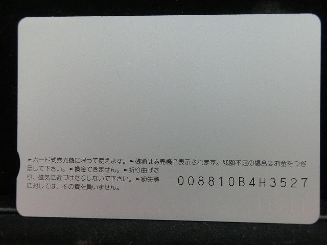 -----------------------商品説明-----------------------■品物 オレンジカード 未使用 ■額面 1000円 ■状態 画像をご確認ください。 ■在庫 在庫については、店舗販売もしておりますので、 ご注文頂いた全てをご用意できない場合もございます。 カートに在庫がない場合にもお問い合わせいただければご相談をお受けいたします。 ■オレンジカードとは JR各社で利用できる磁気式プリペイドカードである。略称でオレカとも呼ばれる。 日本国有鉄道(国鉄)時代の1985年3月25日に関東圏の主要駅で販売が開始されたのち、 全国で発売された。2013年3月31日限りで発売を終了した。 ◎概要 1971年(昭和46年)に研究と開発を開始。マルス105開発や国鉄経営難等もあって開発は数回中断している。 1984年(昭和59年)、JNRカードの開発と同時期に再度開発をスタート。 当時からICカード化にも意欲を見せていたが、この時は断念している。 開発プロジェクトのリーダーは、当初から須田寬(後に常務理事を経てJR東海の初代社長)が担当している。 オレンジカード対応の自動券売機で乗車券(切符)類の購入に利用できる。 また、オレンジカード対応の自動精算機や有人改札の窓口処理機で乗り越し精算にも利用できる。 もっとも、イオカード・Jスルーカード・ワイワイカード(以上いずれも発売終了)のように、 自動改札機に直接投入して自動精算することはできない。 JRの駅のみどりの窓口やカード発売機のほか、一部のデパートで購入することができた。 また、JRの一部特急列車でもオレンジカード発売の案内放送があれば車掌から購入することが可能で、 その中には車内販売限定オリジナルデザインのものもあった。 新幹線のみが停車する山陽新幹線の新神戸駅、北陸新幹線の安中榛名駅や 東北新幹線のいわて沼宮内駅・二戸駅・八戸駅・七戸十和田駅・東海道新幹線の新富士駅、 在来線の無人駅およびみどりの窓口非設置駅では、オレンジカード対応の自動券売機が設置されていないため、 オレンジカードを使用しての乗車券類の購入はできない。 ただし、新幹線のみが停車する軽井沢駅・上田駅・上毛高原駅や、一部のみどりの窓口非設置駅などでは、 オレンジカード対応の自動券売機が設置されている場合がある。 無人駅が多い鶴見線や青梅線の各駅にもオレンジカード対応の自動券売機が設置されていたが、 鶴見線は鶴見駅を除く全駅が2022年2月28日に、 青梅線は一部の駅を除き2017年から2018年にかけて自動券売機が撤去され、利用ができなくなった。 みどりの窓口設置駅でありながら他社管理駅である小諸駅(しなの鉄道管理駅)、 八戸駅(在来線は青い森鉄道管理駅)と自動券売機非設置の左沢駅などでは使用することができない。 オレンジカードで購入した乗車券類は、みどりの窓口[注 2]で乗車変更の取り扱いが可能である。 他の乗車カード類の場合も共通するが、 オレンジカードで他のオレンジカードや他のJRの磁気式乗車カード(イオカード)などを購入したり、 Suica・ICOCA・TOICA・Kitaca・SUGOCAのJRの 非接触型ICカードを購入したりチャージ(現金積み増し)したりすることはできない。 また車内精算で使用することもできない。 以前はクレジットカードでの購入も可能だったが、北海道旅客鉄道(JR北海道)では2003年6月20日から、 東日本旅客鉄道(JR東日本)では2005年ごろから(ビューカードは最後まで購入可能だった)、 JR九州、JR四国、JR西日本も段階的に購入が不可能となった。 これは、クレジットカードを盗んだ者がオレンジカードを購入、 金券ショップで換金することで現金を得るという不正行為を行っており、これを防ぐことが目的であった。 ◎発売終了 JR東日本の首都圏エリアでは1991年3月1日にイオカードが発売開始され、 そして2001年11月18日にSuicaの販売を開始した。 これらのカードは自動券売機で乗車券に引き換えることなくカード自体に対して 自動改札機による改札処理を行うことが可能でありオレンジカードに代わり普及し、 JR東日本ではオレンジカードの売上はピーク時の1991年には327億円あったが、 2006年には13億円に減少した。 また他のJR各社も1990年代以降、自社独自の磁気式ストアードフェアカードやICカードを発売開始している。 JR西日本(西日本旅客鉄道)では、新幹線単独駅に設置されている一部の券売機を除いてオレンジカードが使用可能であり、 在来線扱いの博多南線博多南駅でも使用できる。 ICOCA・Jスルーエリアの小規模の駅で取扱いをやめている。 一部の駅の出札窓口でも専用の処理機を使う事で利用することができた時期もある。 ただし、一部の駅ではオレンジカード対応券売機が設置されていない。 このため、オレンジカード対応の自動券売機が更新されないケースや、 オレンジカードを発売していない駅も出てきている。 しかし、当時ICOCAの導入予定を公式発表していなかった北陸地方と山口県内や山陰地方では、 2008年頃まで記念カードも発行されていた。 また、2011年頃でも、JR北海道[注 3]とJR四国[
