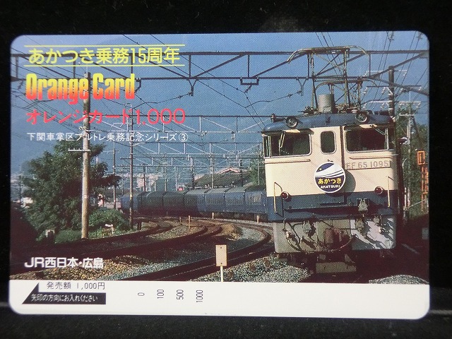 トップページ > オレンジカード・電車 > オレンジカード 未使用 JR 西日本 あかつき乗務 電車-0377