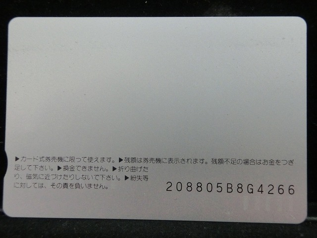 -----------------------商品説明-----------------------■品物 オレンジカード 未使用 ■額面 1000円 ■状態 画像をご確認ください。 ■在庫 在庫については、店舗販売もしておりますので、 ご注文頂いた全てをご用意できない場合もございます。 カートに在庫がない場合にもお問い合わせいただければご相談をお受けいたします。 ■オレンジカードとは JR各社で利用できる磁気式プリペイドカードである。略称でオレカとも呼ばれる。 日本国有鉄道(国鉄)時代の1985年3月25日に関東圏の主要駅で販売が開始されたのち、 全国で発売された。2013年3月31日限りで発売を終了した。 ◎概要 1971年(昭和46年)に研究と開発を開始。マルス105開発や国鉄経営難等もあって開発は数回中断している。 1984年(昭和59年)、JNRカードの開発と同時期に再度開発をスタート。 当時からICカード化にも意欲を見せていたが、この時は断念している。 開発プロジェクトのリーダーは、当初から須田寬(後に常務理事を経てJR東海の初代社長)が担当している。 オレンジカード対応の自動券売機で乗車券(切符)類の購入に利用できる。 また、オレンジカード対応の自動精算機や有人改札の窓口処理機で乗り越し精算にも利用できる。 もっとも、イオカード・Jスルーカード・ワイワイカード(以上いずれも発売終了)のように、 自動改札機に直接投入して自動精算することはできない。 JRの駅のみどりの窓口やカード発売機のほか、一部のデパートで購入することができた。 また、JRの一部特急列車でもオレンジカード発売の案内放送があれば車掌から購入することが可能で、 その中には車内販売限定オリジナルデザインのものもあった。 新幹線のみが停車する山陽新幹線の新神戸駅、北陸新幹線の安中榛名駅や 東北新幹線のいわて沼宮内駅・二戸駅・八戸駅・七戸十和田駅・東海道新幹線の新富士駅、 在来線の無人駅およびみどりの窓口非設置駅では、オレンジカード対応の自動券売機が設置されていないため、 オレンジカードを使用しての乗車券類の購入はできない。 ただし、新幹線のみが停車する軽井沢駅・上田駅・上毛高原駅や、一部のみどりの窓口非設置駅などでは、 オレンジカード対応の自動券売機が設置されている場合がある。 無人駅が多い鶴見線や青梅線の各駅にもオレンジカード対応の自動券売機が設置されていたが、 鶴見線は鶴見駅を除く全駅が2022年2月28日に、 青梅線は一部の駅を除き2017年から2018年にかけて自動券売機が撤去され、利用ができなくなった。 みどりの窓口設置駅でありながら他社管理駅である小諸駅(しなの鉄道管理駅)、 八戸駅(在来線は青い森鉄道管理駅)と自動券売機非設置の左沢駅などでは使用することができない。 オレンジカードで購入した乗車券類は、みどりの窓口[注 2]で乗車変更の取り扱いが可能である。 他の乗車カード類の場合も共通するが、 オレンジカードで他のオレンジカードや他のJRの磁気式乗車カード(イオカード)などを購入したり、 Suica・ICOCA・TOICA・Kitaca・SUGOCAのJRの 非接触型ICカードを購入したりチャージ(現金積み増し)したりすることはできない。 また車内精算で使用することもできない。 以前はクレジットカードでの購入も可能だったが、北海道旅客鉄道(JR北海道)では2003年6月20日から、 東日本旅客鉄道(JR東日本)では2005年ごろから(ビューカードは最後まで購入可能だった)、 JR九州、JR四国、JR西日本も段階的に購入が不可能となった。 これは、クレジットカードを盗んだ者がオレンジカードを購入、 金券ショップで換金することで現金を得るという不正行為を行っており、これを防ぐことが目的であった。 ◎発売終了 JR東日本の首都圏エリアでは1991年3月1日にイオカードが発売開始され、 そして2001年11月18日にSuicaの販売を開始した。 これらのカードは自動券売機で乗車券に引き換えることなくカード自体に対して 自動改札機による改札処理を行うことが可能でありオレンジカードに代わり普及し、 JR東日本ではオレンジカードの売上はピーク時の1991年には327億円あったが、 2006年には13億円に減少した。 また他のJR各社も1990年代以降、自社独自の磁気式ストアードフェアカードやICカードを発売開始している。 JR西日本(西日本旅客鉄道)では、新幹線単独駅に設置されている一部の券売機を除いてオレンジカードが使用可能であり、 在来線扱いの博多南線博多南駅でも使用できる。 ICOCA・Jスルーエリアの小規模の駅で取扱いをやめている。 一部の駅の出札窓口でも専用の処理機を使う事で利用することができた時期もある。 ただし、一部の駅ではオレンジカード対応券売機が設置されていない。 このため、オレンジカード対応の自動券売機が更新されないケースや、 オレンジカードを発売していない駅も出てきている。 しかし、当時ICOCAの導入予定を公式発表していなかった北陸地方と山口県内や山陰地方では、 2008年頃まで記念カードも発行されていた。 また、2011年頃でも、JR北海道[注 3]とJR四国[
