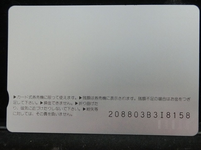 -----------------------商品説明-----------------------■品物 オレンジカード 未使用 ■額面 1000円 ■状態 画像をご確認ください。 ■在庫 在庫については、店舗販売もしておりますので、 ご注文頂いた全てをご用意できない場合もございます。 カートに在庫がない場合にもお問い合わせいただければご相談をお受けいたします。 ■オレンジカードとは JR各社で利用できる磁気式プリペイドカードである。略称でオレカとも呼ばれる。 日本国有鉄道(国鉄)時代の1985年3月25日に関東圏の主要駅で販売が開始されたのち、 全国で発売された。2013年3月31日限りで発売を終了した。 ◎概要 1971年(昭和46年)に研究と開発を開始。マルス105開発や国鉄経営難等もあって開発は数回中断している。 1984年(昭和59年)、JNRカードの開発と同時期に再度開発をスタート。 当時からICカード化にも意欲を見せていたが、この時は断念している。 開発プロジェクトのリーダーは、当初から須田寬(後に常務理事を経てJR東海の初代社長)が担当している。 オレンジカード対応の自動券売機で乗車券(切符)類の購入に利用できる。 また、オレンジカード対応の自動精算機や有人改札の窓口処理機で乗り越し精算にも利用できる。 もっとも、イオカード・Jスルーカード・ワイワイカード(以上いずれも発売終了)のように、 自動改札機に直接投入して自動精算することはできない。 JRの駅のみどりの窓口やカード発売機のほか、一部のデパートで購入することができた。 また、JRの一部特急列車でもオレンジカード発売の案内放送があれば車掌から購入することが可能で、 その中には車内販売限定オリジナルデザインのものもあった。 新幹線のみが停車する山陽新幹線の新神戸駅、北陸新幹線の安中榛名駅や 東北新幹線のいわて沼宮内駅・二戸駅・八戸駅・七戸十和田駅・東海道新幹線の新富士駅、 在来線の無人駅およびみどりの窓口非設置駅では、オレンジカード対応の自動券売機が設置されていないため、 オレンジカードを使用しての乗車券類の購入はできない。 ただし、新幹線のみが停車する軽井沢駅・上田駅・上毛高原駅や、一部のみどりの窓口非設置駅などでは、 オレンジカード対応の自動券売機が設置されている場合がある。 無人駅が多い鶴見線や青梅線の各駅にもオレンジカード対応の自動券売機が設置されていたが、 鶴見線は鶴見駅を除く全駅が2022年2月28日に、 青梅線は一部の駅を除き2017年から2018年にかけて自動券売機が撤去され、利用ができなくなった。 みどりの窓口設置駅でありながら他社管理駅である小諸駅(しなの鉄道管理駅)、 八戸駅(在来線は青い森鉄道管理駅)と自動券売機非設置の左沢駅などでは使用することができない。 オレンジカードで購入した乗車券類は、みどりの窓口[注 2]で乗車変更の取り扱いが可能である。 他の乗車カード類の場合も共通するが、 オレンジカードで他のオレンジカードや他のJRの磁気式乗車カード(イオカード)などを購入したり、 Suica・ICOCA・TOICA・Kitaca・SUGOCAのJRの 非接触型ICカードを購入したりチャージ(現金積み増し)したりすることはできない。 また車内精算で使用することもできない。 以前はクレジットカードでの購入も可能だったが、北海道旅客鉄道(JR北海道)では2003年6月20日から、 東日本旅客鉄道(JR東日本)では2005年ごろから(ビューカードは最後まで購入可能だった)、 JR九州、JR四国、JR西日本も段階的に購入が不可能となった。 これは、クレジットカードを盗んだ者がオレンジカードを購入、 金券ショップで換金することで現金を得るという不正行為を行っており、これを防ぐことが目的であった。 ◎発売終了 JR東日本の首都圏エリアでは1991年3月1日にイオカードが発売開始され、 そして2001年11月18日にSuicaの販売を開始した。 これらのカードは自動券売機で乗車券に引き換えることなくカード自体に対して 自動改札機による改札処理を行うことが可能でありオレンジカードに代わり普及し、 JR東日本ではオレンジカードの売上はピーク時の1991年には327億円あったが、 2006年には13億円に減少した。 また他のJR各社も1990年代以降、自社独自の磁気式ストアードフェアカードやICカードを発売開始している。 JR西日本(西日本旅客鉄道)では、新幹線単独駅に設置されている一部の券売機を除いてオレンジカードが使用可能であり、 在来線扱いの博多南線博多南駅でも使用できる。 ICOCA・Jスルーエリアの小規模の駅で取扱いをやめている。 一部の駅の出札窓口でも専用の処理機を使う事で利用することができた時期もある。 ただし、一部の駅ではオレンジカード対応券売機が設置されていない。 このため、オレンジカード対応の自動券売機が更新されないケースや、 オレンジカードを発売していない駅も出てきている。 しかし、当時ICOCAの導入予定を公式発表していなかった北陸地方と山口県内や山陰地方では、 2008年頃まで記念カードも発行されていた。 また、2011年頃でも、JR北海道[注 3]とJR四国[