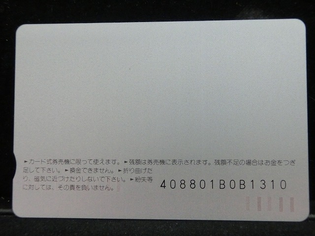 -----------------------商品説明-----------------------■品物 オレンジカード 未使用 ■額面 1000円 ■状態 画像をご確認ください。 ■在庫 在庫については、店舗販売もしておりますので、 ご注文頂いた全てをご用意できない場合もございます。 カートに在庫がない場合にもお問い合わせいただければご相談をお受けいたします。 ■オレンジカードとは JR各社で利用できる磁気式プリペイドカードである。略称でオレカとも呼ばれる。 日本国有鉄道(国鉄)時代の1985年3月25日に関東圏の主要駅で販売が開始されたのち、 全国で発売された。2013年3月31日限りで発売を終了した。 ◎概要 1971年(昭和46年)に研究と開発を開始。マルス105開発や国鉄経営難等もあって開発は数回中断している。 1984年(昭和59年)、JNRカードの開発と同時期に再度開発をスタート。 当時からICカード化にも意欲を見せていたが、この時は断念している。 開発プロジェクトのリーダーは、当初から須田寬(後に常務理事を経てJR東海の初代社長)が担当している。 オレンジカード対応の自動券売機で乗車券(切符)類の購入に利用できる。 また、オレンジカード対応の自動精算機や有人改札の窓口処理機で乗り越し精算にも利用できる。 もっとも、イオカード・Jスルーカード・ワイワイカード(以上いずれも発売終了)のように、 自動改札機に直接投入して自動精算することはできない。 JRの駅のみどりの窓口やカード発売機のほか、一部のデパートで購入することができた。 また、JRの一部特急列車でもオレンジカード発売の案内放送があれば車掌から購入することが可能で、 その中には車内販売限定オリジナルデザインのものもあった。 新幹線のみが停車する山陽新幹線の新神戸駅、北陸新幹線の安中榛名駅や 東北新幹線のいわて沼宮内駅・二戸駅・八戸駅・七戸十和田駅・東海道新幹線の新富士駅、 在来線の無人駅およびみどりの窓口非設置駅では、オレンジカード対応の自動券売機が設置されていないため、 オレンジカードを使用しての乗車券類の購入はできない。 ただし、新幹線のみが停車する軽井沢駅・上田駅・上毛高原駅や、一部のみどりの窓口非設置駅などでは、 オレンジカード対応の自動券売機が設置されている場合がある。 無人駅が多い鶴見線や青梅線の各駅にもオレンジカード対応の自動券売機が設置されていたが、 鶴見線は鶴見駅を除く全駅が2022年2月28日に、 青梅線は一部の駅を除き2017年から2018年にかけて自動券売機が撤去され、利用ができなくなった。 みどりの窓口設置駅でありながら他社管理駅である小諸駅(しなの鉄道管理駅)、 八戸駅(在来線は青い森鉄道管理駅)と自動券売機非設置の左沢駅などでは使用することができない。 オレンジカードで購入した乗車券類は、みどりの窓口[注 2]で乗車変更の取り扱いが可能である。 他の乗車カード類の場合も共通するが、 オレンジカードで他のオレンジカードや他のJRの磁気式乗車カード(イオカード)などを購入したり、 Suica・ICOCA・TOICA・Kitaca・SUGOCAのJRの 非接触型ICカードを購入したりチャージ(現金積み増し)したりすることはできない。 また車内精算で使用することもできない。 以前はクレジットカードでの購入も可能だったが、北海道旅客鉄道(JR北海道)では2003年6月20日から、 東日本旅客鉄道(JR東日本)では2005年ごろから(ビューカードは最後まで購入可能だった)、 JR九州、JR四国、JR西日本も段階的に購入が不可能となった。 これは、クレジットカードを盗んだ者がオレンジカードを購入、 金券ショップで換金することで現金を得るという不正行為を行っており、これを防ぐことが目的であった。 ◎発売終了 JR東日本の首都圏エリアでは1991年3月1日にイオカードが発売開始され、 そして2001年11月18日にSuicaの販売を開始した。 これらのカードは自動券売機で乗車券に引き換えることなくカード自体に対して 自動改札機による改札処理を行うことが可能でありオレンジカードに代わり普及し、 JR東日本ではオレンジカードの売上はピーク時の1991年には327億円あったが、 2006年には13億円に減少した。 また他のJR各社も1990年代以降、自社独自の磁気式ストアードフェアカードやICカードを発売開始している。 JR西日本(西日本旅客鉄道)では、新幹線単独駅に設置されている一部の券売機を除いてオレンジカードが使用可能であり、 在来線扱いの博多南線博多南駅でも使用できる。 ICOCA・Jスルーエリアの小規模の駅で取扱いをやめている。 一部の駅の出札窓口でも専用の処理機を使う事で利用することができた時期もある。 ただし、一部の駅ではオレンジカード対応券売機が設置されていない。 このため、オレンジカード対応の自動券売機が更新されないケースや、 オレンジカードを発売していない駅も出てきている。 しかし、当時ICOCAの導入予定を公式発表していなかった北陸地方と山口県内や山陰地方では、 2008年頃まで記念カードも発行されていた。 また、2011年頃でも、JR北海道[注 3]とJR四国[