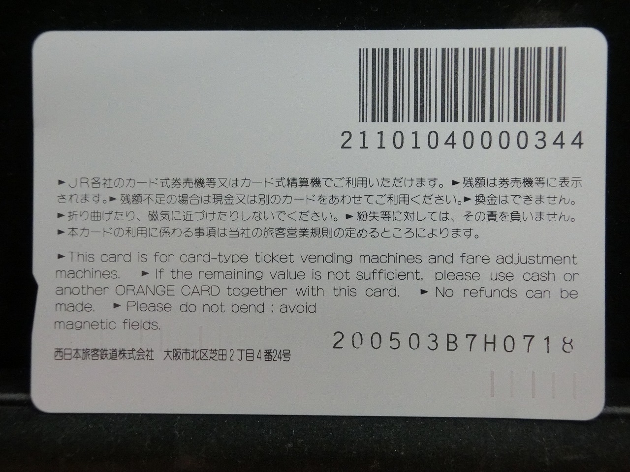 -----------------------商品説明-----------------------■品物 オレンジカード 未使用 ■額面 1000円 ■状態 画像をご確認ください。 ■在庫 在庫については、店舗販売もしておりますので、 ご注文頂いた全てをご用意できない場合もございます。 カートに在庫がない場合にもお問い合わせいただければご相談をお受けいたします。 ■オレンジカードとは JR各社で利用できる磁気式プリペイドカードである。略称でオレカとも呼ばれる。 日本国有鉄道(国鉄)時代の1985年3月25日に関東圏の主要駅で販売が開始されたのち、 全国で発売された。2013年3月31日限りで発売を終了した。 ◎概要 1971年(昭和46年)に研究と開発を開始。マルス105開発や国鉄経営難等もあって開発は数回中断している。 1984年(昭和59年)、JNRカードの開発と同時期に再度開発をスタート。 当時からICカード化にも意欲を見せていたが、この時は断念している。 開発プロジェクトのリーダーは、当初から須田寬(後に常務理事を経てJR東海の初代社長)が担当している。 オレンジカード対応の自動券売機で乗車券(切符)類の購入に利用できる。 また、オレンジカード対応の自動精算機や有人改札の窓口処理機で乗り越し精算にも利用できる。 もっとも、イオカード・Jスルーカード・ワイワイカード(以上いずれも発売終了)のように、 自動改札機に直接投入して自動精算することはできない。 JRの駅のみどりの窓口やカード発売機のほか、一部のデパートで購入することができた。 また、JRの一部特急列車でもオレンジカード発売の案内放送があれば車掌から購入することが可能で、 その中には車内販売限定オリジナルデザインのものもあった。 新幹線のみが停車する山陽新幹線の新神戸駅、北陸新幹線の安中榛名駅や 東北新幹線のいわて沼宮内駅・二戸駅・八戸駅・七戸十和田駅・東海道新幹線の新富士駅、 在来線の無人駅およびみどりの窓口非設置駅では、オレンジカード対応の自動券売機が設置されていないため、 オレンジカードを使用しての乗車券類の購入はできない。 ただし、新幹線のみが停車する軽井沢駅・上田駅・上毛高原駅や、一部のみどりの窓口非設置駅などでは、 オレンジカード対応の自動券売機が設置されている場合がある。 無人駅が多い鶴見線や青梅線の各駅にもオレンジカード対応の自動券売機が設置されていたが、 鶴見線は鶴見駅を除く全駅が2022年2月28日に、 青梅線は一部の駅を除き2017年から2018年にかけて自動券売機が撤去され、利用ができなくなった。 みどりの窓口設置駅でありながら他社管理駅である小諸駅(しなの鉄道管理駅)、 八戸駅(在来線は青い森鉄道管理駅)と自動券売機非設置の左沢駅などでは使用することができない。 オレンジカードで購入した乗車券類は、みどりの窓口[注 2]で乗車変更の取り扱いが可能である。 他の乗車カード類の場合も共通するが、 オレンジカードで他のオレンジカードや他のJRの磁気式乗車カード(イオカード)などを購入したり、 Suica・ICOCA・TOICA・Kitaca・SUGOCAのJRの 非接触型ICカードを購入したりチャージ(現金積み増し)したりすることはできない。 また車内精算で使用することもできない。 以前はクレジットカードでの購入も可能だったが、北海道旅客鉄道(JR北海道)では2003年6月20日から、 東日本旅客鉄道(JR東日本)では2005年ごろから(ビューカードは最後まで購入可能だった)、 JR九州、JR四国、JR西日本も段階的に購入が不可能となった。 これは、クレジットカードを盗んだ者がオレンジカードを購入、 金券ショップで換金することで現金を得るという不正行為を行っており、これを防ぐことが目的であった。 ◎発売終了 JR東日本の首都圏エリアでは1991年3月1日にイオカードが発売開始され、 そして2001年11月18日にSuicaの販売を開始した。 これらのカードは自動券売機で乗車券に引き換えることなくカード自体に対して 自動改札機による改札処理を行うことが可能でありオレンジカードに代わり普及し、 JR東日本ではオレンジカードの売上はピーク時の1991年には327億円あったが、 2006年には13億円に減少した。 また他のJR各社も1990年代以降、自社独自の磁気式ストアードフェアカードやICカードを発売開始している。 JR西日本(西日本旅客鉄道)では、新幹線単独駅に設置されている一部の券売機を除いてオレンジカードが使用可能であり、 在来線扱いの博多南線博多南駅でも使用できる。 ICOCA・Jスルーエリアの小規模の駅で取扱いをやめている。 一部の駅の出札窓口でも専用の処理機を使う事で利用することができた時期もある。 ただし、一部の駅ではオレンジカード対応券売機が設置されていない。 このため、オレンジカード対応の自動券売機が更新されないケースや、 オレンジカードを発売していない駅も出てきている。 しかし、当時ICOCAの導入予定を公式発表していなかった北陸地方と山口県内や山陰地方では、 2008年頃まで記念カードも発行されていた。 また、2011年頃でも、JR北海道[注 3]とJR四国[