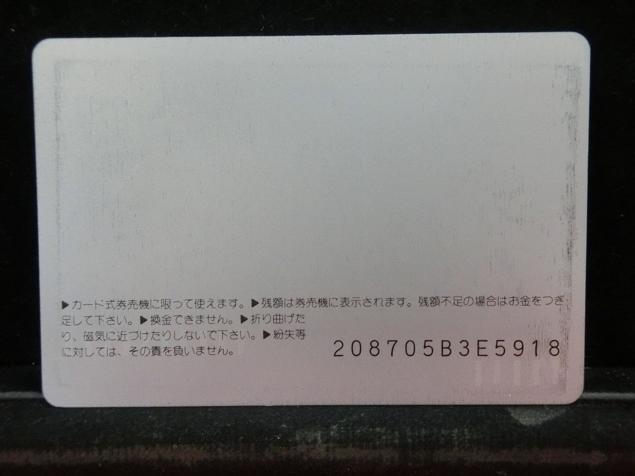 -----------------------商品説明-----------------------■品物 オレンジカード 未使用 ■額面 1000円 ■状態 画像をご確認ください。 ■在庫 在庫については、店舗販売もしておりますので、 ご注文頂いた全てをご用意できない場合もございます。 カートに在庫がない場合にもお問い合わせいただければご相談をお受けいたします。 ■オレンジカードとは JR各社で利用できる磁気式プリペイドカードである。略称でオレカとも呼ばれる。 日本国有鉄道(国鉄)時代の1985年3月25日に関東圏の主要駅で販売が開始されたのち、 全国で発売された。2013年3月31日限りで発売を終了した。 ◎概要 1971年(昭和46年)に研究と開発を開始。マルス105開発や国鉄経営難等もあって開発は数回中断している。 1984年(昭和59年)、JNRカードの開発と同時期に再度開発をスタート。 当時からICカード化にも意欲を見せていたが、この時は断念している。 開発プロジェクトのリーダーは、当初から須田寬(後に常務理事を経てJR東海の初代社長)が担当している。 オレンジカード対応の自動券売機で乗車券(切符)類の購入に利用できる。 また、オレンジカード対応の自動精算機や有人改札の窓口処理機で乗り越し精算にも利用できる。 もっとも、イオカード・Jスルーカード・ワイワイカード(以上いずれも発売終了)のように、 自動改札機に直接投入して自動精算することはできない。 JRの駅のみどりの窓口やカード発売機のほか、一部のデパートで購入することができた。 また、JRの一部特急列車でもオレンジカード発売の案内放送があれば車掌から購入することが可能で、 その中には車内販売限定オリジナルデザインのものもあった。 新幹線のみが停車する山陽新幹線の新神戸駅、北陸新幹線の安中榛名駅や 東北新幹線のいわて沼宮内駅・二戸駅・八戸駅・七戸十和田駅・東海道新幹線の新富士駅、 在来線の無人駅およびみどりの窓口非設置駅では、オレンジカード対応の自動券売機が設置されていないため、 オレンジカードを使用しての乗車券類の購入はできない。 ただし、新幹線のみが停車する軽井沢駅・上田駅・上毛高原駅や、一部のみどりの窓口非設置駅などでは、 オレンジカード対応の自動券売機が設置されている場合がある。 無人駅が多い鶴見線や青梅線の各駅にもオレンジカード対応の自動券売機が設置されていたが、 鶴見線は鶴見駅を除く全駅が2022年2月28日に、 青梅線は一部の駅を除き2017年から2018年にかけて自動券売機が撤去され、利用ができなくなった。 みどりの窓口設置駅でありながら他社管理駅である小諸駅(しなの鉄道管理駅)、 八戸駅(在来線は青い森鉄道管理駅)と自動券売機非設置の左沢駅などでは使用することができない。 オレンジカードで購入した乗車券類は、みどりの窓口[注 2]で乗車変更の取り扱いが可能である。 他の乗車カード類の場合も共通するが、 オレンジカードで他のオレンジカードや他のJRの磁気式乗車カード(イオカード)などを購入したり、 Suica・ICOCA・TOICA・Kitaca・SUGOCAのJRの 非接触型ICカードを購入したりチャージ(現金積み増し)したりすることはできない。 また車内精算で使用することもできない。 以前はクレジットカードでの購入も可能だったが、北海道旅客鉄道(JR北海道)では2003年6月20日から、 東日本旅客鉄道(JR東日本)では2005年ごろから(ビューカードは最後まで購入可能だった)、 JR九州、JR四国、JR西日本も段階的に購入が不可能となった。 これは、クレジットカードを盗んだ者がオレンジカードを購入、 金券ショップで換金することで現金を得るという不正行為を行っており、これを防ぐことが目的であった。 ◎発売終了 JR東日本の首都圏エリアでは1991年3月1日にイオカードが発売開始され、 そして2001年11月18日にSuicaの販売を開始した。 これらのカードは自動券売機で乗車券に引き換えることなくカード自体に対して 自動改札機による改札処理を行うことが可能でありオレンジカードに代わり普及し、 JR東日本ではオレンジカードの売上はピーク時の1991年には327億円あったが、 2006年には13億円に減少した。 また他のJR各社も1990年代以降、自社独自の磁気式ストアードフェアカードやICカードを発売開始している。 JR西日本(西日本旅客鉄道)では、新幹線単独駅に設置されている一部の券売機を除いてオレンジカードが使用可能であり、 在来線扱いの博多南線博多南駅でも使用できる。 ICOCA・Jスルーエリアの小規模の駅で取扱いをやめている。 一部の駅の出札窓口でも専用の処理機を使う事で利用することができた時期もある。 ただし、一部の駅ではオレンジカード対応券売機が設置されていない。 このため、オレンジカード対応の自動券売機が更新されないケースや、 オレンジカードを発売していない駅も出てきている。 しかし、当時ICOCAの導入予定を公式発表していなかった北陸地方と山口県内や山陰地方では、 2008年頃まで記念カードも発行されていた。 また、2011年頃でも、JR北海道[注 3]とJR四国[