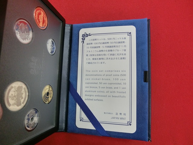 -----------------------商品説明-----------------------◇商品 2011 通常プルーフ貨幣セット〔年銘板(無)〕 ◇詳細 年銘板図柄 : なし 額面価格 : 666円 発行数 : 5,000セット ケース寸法 : (約)縦17×横3×奥行12.3cm ●500円 意匠:桐 素材:黄銅(銅720、亜鉛200ニッケル80) 重さ:7g 直径:26.5mm ●100円 意匠:桜花 素材:白銅(銅750、ニッケル250) 重さ:4.8g 直径:22.6mm ●50円 意匠:菊花 素材:白銅(銅750、ニッケル250) 重さ:4.0g 直径:21mm ●10円 意匠:平等院鳳凰堂、常盤木 素材:青銅(銅950、亜鉛40、錫10) 重さ:4.5g 直径:23.5mm ●5円 意匠:稲、歯車、水 素材:黄銅(銅600~700、亜鉛400~300) 重さ:3.75g 直径:22mm ●1円意匠 意匠:若木 素材:アルミニウム 重さ:1.0g 直径:20mm ◇状態 パッと見で綺麗なお品ですが、経年劣化による擦れ傷、ヤケ、シミが多少ある場合があります。 (写真は見本です。実際に発送するものとは異なる場合がございますが、同等品程度の品物を発送します。) ※商品写真はできる限り実物の色に近づけるようしておりますが、 お使いのモニター設定、お部屋の照明等により実際の商品と色味が異なる場合がございます。 ◇プルーフ貨幣とは 流通を目的とした貨幣ではなく、収集用に表面を鏡面処理を施した貨幣です。 ●歴史 プルーフ貨幣はイギリスで17世紀には既に存在していたことが確認されているが、正確な起源は不明である。日本では明治時代の金銀貨幣において、イギリス人技術者の指導の下、鋳造機や刻印の様々なテストを行った際に試験的に製造され、アメリカのシカゴ博覧会に展示する硬貨として製造したのが公式な最初の例である。その後、新しい硬貨が発行されるごとに試験的にプルーフ貨幣の製造も試みられたが、本格的に製造が開始されたのは1987年 (昭和62年) からである。 日本では、記念硬貨のみに限らず、昭和62年より、通常貨幣においてもプルーフ貨幣が製造されている。 ●プルーフ貨幣の種類 フロステッドプルーフ コインの地肌は鏡面仕上げ、図案の盛り上がった部分はつや消し(梨地など)仕上げ。英語では "frosted" や "cameo" という呼称もする。日本のプルーフ貨幣はこのタイプ。 ブリリアントプルーフ コイン全体がツルツルに光沢を持った仕上げ。アメリカ合衆国や中南米のプルーフコインによく見られる。 マットプルーフ コイン全体がマット(つや消し)仕上げのもの。イギリスのエドワード7世戴冠記念コインセット(1902年)などが代表作である。 プルーフ貨幣の製造工程 貨幣の製造は極印(ごくいん)という金型を、円形(えんぎょう)という円板に打ち付け、ハンコのように模様を転写して行われる。これを圧印(あついん)と呼び、こうした製造の基本的な部分は通常貨幣もプルーフ貨幣も同じである。 しかしプルーフ貨幣の製造では、特別に磨き上げられた専用の極印が用意され、同じく特別に鏡面研磨された専用の円形に対して圧印が行われる。 そして通常貨幣では1工程内で1回の圧印であるが、プルーフ貨幣では鏡面および掘り込みを綺麗に転写するために2回以上の連続圧印が行われる。 圧印が1回だけだと極印の肖像画などの掘り込みの底面部分と円形の間に逃げ場を失い圧縮された空気溜まりが生じ、意図せぬてかりが発生して肖像画などのディテール(特に顔の表情など梨地部分)の転写の妨げとなるためである。 極印を少しだけ上昇させて一度型を開放し、再度(2回以上)圧印する事によって精細なディテールが転写される。 また圧印に用いるプレス機についても、従来はナックルジョイント型機械式プレス機が多用されてきたが、近年では世界中の造幣局で、型開き時の隙間を最小化制御でき、圧印時の圧力制御が可能である、高品質な油圧プレス機が多用されている。 なお連続圧印において型を開放する際に、極印と円形の間に空気中のゴミが紛れ込むと貨幣の表面にキズとして転写される恐れがあるため、プレス機はクリーンルームの中に設置される。 圧印後は目視検査を併用してキズはもちろん、鏡面の曇りや梨地(マット)部分のてかりが生じた不良品を除去する工程に移るが、ここでの作業もクリーンルームの中で行われるのが普通である。機械的に大量に製造する流通用の硬貨と異なり、厳しい品質管理の下で、非常に手間のかかる作業を経て出荷されている。 なお現在の日本のプルーフ硬貨は、刻印後に湿気などの原因で錆や曇りが出ないように、特殊な樹脂の防錆剤を塗布している。 ●準プルーフ貨幣 日本では、以前はこの磨き上げた極印は、プルーフ貨幣を製造後に通常貨の製造に使用されていたので、通常の流通硬貨の中にも、鏡面に近い状態の硬貨が時折見受けられた。このような硬貨を「準プルーフ貨幣(prooflike coin)」と言う。なお現在の日本では通常の流通貨とプルーフ貨幣では、製造時のプレス機が異なるので、プルーフ貨幣の極印を流通貨のプレス機に流用することは出来ず、完全に別々の工程で製造されている。 近年の流通貨は、摩耗がなく状態が良好であればそれなりの鏡面状に仕上がっては