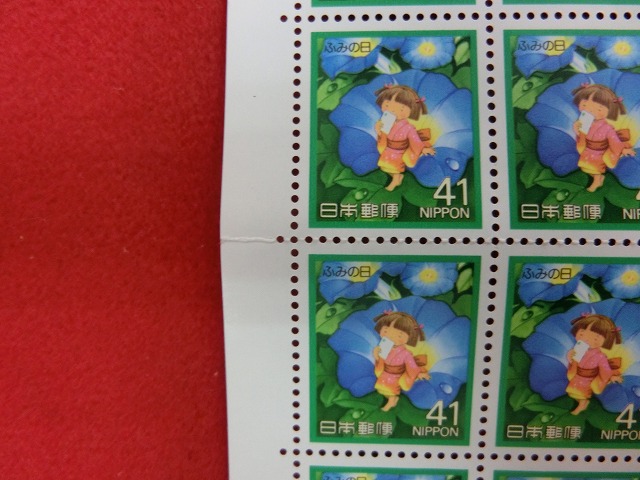-----------------------商品説明-----------------------■品物 41円切手 ふみの日 あさがおだより 記念切手 100枚シート ■状態 美品 ※完品 折り目、汚れ、ホッチキス跡などがない、とても綺麗なお品。 ※美品 パッと見て綺麗なお品ですが、中央の折り目やホッチキスの跡、目立たないシミなどが有る場合があります。 ※並品 パッと見で、汚れ等があるお品。 ■カラーマーク シリーズや発売時期により、カラーマークの有無や、場所などが異なりますが、 当店では選べません。 ■在庫 在庫については、店舗販売もしておりますので、 ご注文頂いた全てをご用意できない場合もございます。 カートに在庫がない場合にもお問い合わせいただければご相談をお受けいたします。 ■切手の種類 □普通切手とは 現在郵便局で普通切手とし販売されている物です。通常切手とも言われてます。 □記念切手とは 過去に販売された特殊切手・ふるさと切手・グリーティング切手、旧普通切手です。 □別納用切手 郵便局へのお支払いに、現金の代わりに切手でお支払いできる切手(別納用)です。 料金別納郵便、料金受取人払い、ゆうパック、国際郵便EMSのコスト削減に利用できます。 □別納用切手 台紙貼り A3サイズコピー用紙に別納用切手を貼ったものです。切 ■普通切手の歴史 日本最初の切手は竜切手 国家元首の肖像を意匠とすることの多い世界的傾向とは異なり、 天皇の肖像を意匠としたことはないが、 天皇の身代わりとして明治から昭和にかけての高額普通切手の意匠に神功皇后の肖像が採用されたことはある。 これには明治天皇の意向が反映されているといわれている。 明治初期に紙幣と切手製造の基礎を構築した、イタリア人技術者エドアルド・キヨッソーネは、 日本も紙幣や切手に国家元首の肖像(御真影。これ自体、彼の手になる肖像画を、 写真撮影したものである。)を使うのが妥当であるとしていた。 しかし、明治天皇が生来の写真嫌いで拒否されたという。 天皇が神格化されたこともあって、天皇を切手の意匠とするのはタブーとされるようになった。 以降、日本では記念・特殊切手も含めて在位中の天皇が切手の意匠になったことはない。 明治から昭和初期にかけては証票的な意匠となっていたが、 それ以降は徐々に具体的なモチーフを意匠とすることが多くなった。 第二次世界大戦中には逓信省も戦意昂揚の一翼を担い、大東亜共栄圏の地図や戦闘機、 少年航空兵、靖国神社など国家主義的、軍国主義的な意匠となった。 戦後は一転して産業、風景、動植物、文化財を意匠とするようになった。 このような事情を踏まえた切手収集家による分類方法が確立している(後述)。 なお、「昭和」「平成」といった元号名が含まれるシリーズ名があるが、 改元は普通切手のシリーズ変更と直接の関係はないため、 普通切手シリーズの発売期間は必ずしも時代ごとの区分と一致しない。 現在、郵便事業を担う日本郵便の発行する普通切手のテーマは 「日本の自然」であり、日本国内に生息する鳥類や花や昆虫を意匠としている。 日本切手カタログ(さくら日本切手カタログ・日本切手専門カタログ・ビジュアル日本切手カタログ)には 「平成切手」というシリーズ名称で収録されており、切手収集家の間でも使用されている。 ◇日本の切手の有効性 下記以外の切手は、たとえ銭位・厘位であっても無効を定めた法令がないため、 現在でも使用可能である。 したがって現在有効な最古の切手は1876年(明治9年)発行の5厘切手(旧小判切手)である。 なお銭は円の百分の一、厘は銭の十分の一である。 手彫切手(竜文切手、竜銭切手、桜切手及び鳥切手)と 旧小判切手(5厘を除く)は法令により1889年12月1日以降使用禁止となった。 「第一回国勢調査紀念切手」(1920年9月25日発売)は発売開始当初から有効期限(1921年3月31日迄)が定められていた。 第二次世界大戦後、GHQから軍国主義的あるいは神道等の象徴に関係があると みなされた切手や葉書(いわゆる追放切手)は法令[8]により1947年9月1日以降使用禁止となった。 これらは現在でも東京中央郵便局で現行の有効な切手および葉書に引き換えることができる。 ■日本の普通切手の一覧 □竜文切手 1871年 日本最初の切手、通貨制度が江戸時代と同じだったため額面が「文」表示。 目打が無く、裏面に糊もついていなかった。 □竜銭切手 1872年 通貨制度近代化により額面が「銭」表示となる。初めて目打が入れられたのもこの切手からである。 □桜切手 1872年 - 1876年 四隅に桜花をあしらっていたことに由来する名称。 途中から在庫管理のため、印面にカナが加えられた。 また、民間の印刷会社である松田印刷が印刷を担ったシリーズも存在する。 カナを含め、数多くのバリエーションがあり、日本切手の収集家の人気が最も高いシリーズである。 この切手の途中から、政府のみが切手の印刷を行うようになる。 このシリーズから切手に菊花紋章を表示するようになった。 □鳥切手 1875年 外国郵