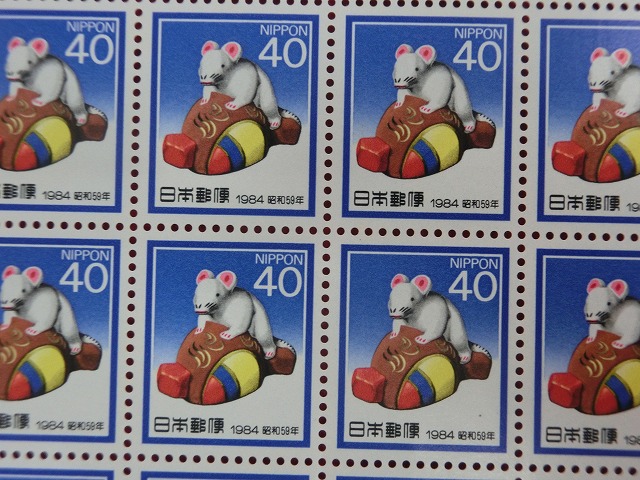 | 昭和59年 40円 100枚シート 小槌乗りねずみ 年賀切手 | ||||