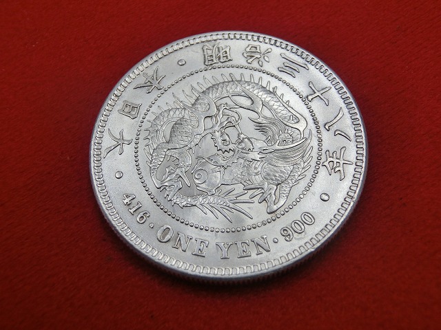 -----------------------商品説明-----------------------■品物 新1円銀貨 明治38年 円銀 小型 古銭 NO-1036 ■量目(実測値) 26.97g ■品位(実測値) 銀900 ■直径(実測値) 38.1mm ■状態 画像をご確認ください。 ■在庫 在庫については、店舗販売もしておりますので、 ご注文頂いた全てをご用意できない場合もございます。 ※カートに在庫がない場合にもお問い合わせいただければご相談をお受けいたします。 ■発行枚数 明治 3年 3,685,049枚 明治 7年 942,006枚 明治 8年 139,323枚 明治 11年 856,378枚 明治 12年 1,913,318枚 明治 13年 5,247,432枚 明治 14年 2,927,409枚 明治 15年 5,089,064枚 明治 16年 3,636,678枚 明治 17年 3,599,192枚 明治 18年 4,296,620枚 明治 19年 9,084,262枚 明治 20年 8,275,787枚 明治 21年 9,477,414枚 明治 22年 9,295,348枚 明治 23年 7,292,877枚 明治 24年 7,518,021枚 明治 25年 11,187,613枚 明治 26年 10,403,477枚 明治 27年 22,118,416枚 明治 28年 21,098,754枚 明治 29年 11,363,949枚 明治 30年 2,448,694枚 明治 34年 1,256,252枚 明治 35年 668,782枚 明治 36年 5,131,096枚 明治 37年 6,970,843枚 明治 38年 5,031,503枚 明治 39年 3,471,297枚 明治 41年 334,705枚 明治 45年 5,000,000枚 大正 3年 11,500,000枚 ■一円銀貨とは 日本の近代銀貨。「円銀」とも呼ばれる。 1871年(明治4年)の新貨条例により、対外貿易専用銀貨として発行された。1914年(大正3年)まで製造され、 主に台湾や中国で流通した。 品位は銀.900、銅.100、量目は26.96グラム(416グレイン)で大型と小型に大別され、 量目は同じだが直径が異なる。 大型は直径38.6mm小型は38.1mmである。 大型は1887年(明治20年)まで、小型は大型に代わり同1887年から1914年(大正3年)まで製造された。 製造された当時は明治維新後まもなく、造幣技術が確立されていなかったため政府は英国に範を求めたが、 持参した加納夏雄の原図の竜図が絶賛され、日本で製造されることになった。 また1875年より1878年まで、メキシコ銀貨などと量目をあわせ、 同じく貿易専用の「貿易銀」(量目420グレイン)も鋳造された。 1878年(明治11年)からは日本国内でも一円銀貨の流通が認められ、 金準備が不足し名目と化した金本位制下における事実上の本位貨幣となる(金銀複本位制、事実上の銀本位制)。 1885年には一円銀貨との兌換を明記した紙幣(日本銀行兌換銀券)が発行された。 ただし、一円銀貨が日本国内の市場での支払いに用いられることは稀であり、 これに相当する高額の支払いは大半が明治通宝や改造紙幣、日本銀行兌換銀券などといった紙幣によるものであった。 1897年の貨幣法施行による金兌換再開にともない、一円銀貨の金貨との引換と日本での通用停止が決まった。 しかし日清戦争以来、台湾や朝鮮では一円銀貨が盛んに流通していて、すぐに通用停止とすることができず、 当分の間、「丸銀」の極印を「一圓」の文字の左側または右側に打って、外地のみ通用を認めた。 いざ実施してみると、丸銀の極印のあるなしで、通用するしないといった市場の混乱が発生したため、 1897年に発効した丸銀極印打ちは、翌1898年には取りやめになり、その年に一円銀貨の日本内地での流通は禁止された。 しかし日清戦争の結果1897年より日本領となった台湾では一円銀貨の流通が続き、 外地および海外向けの一円銀貨(明治34年銘以降の一円銀貨は日本国内では通用しなかったので、 「円形銀塊」とも呼ばれた)の製造は1914年まで行われた。 ◎収集 一円銀貨は収集家の間で人気があり、価格は手変わりや状態、年号などにより、数千円から数十万円もの大差がある。 近年では台湾や中国から日本に大量に逆輸入されている。 また、今は廃貨となっていて有効な貨幣ではないために贋作の製造・流通自体は犯罪とならず収集家向けの贋作も存在している。 但し贋作と知りながら本物として売ると詐欺罪にあたる。 近年では特別年号(特年、発行枚数の少ない年号)のみならず並年号(並年、発行枚数の多い年号)においても 3Dプリンターで製作されたものなど精巧な贋作が多数出回っており、 中国製のものも多く、中には本物とミクロン単位という顕微鏡レベルの違いしかないものもあり、特に注意が必要とされている。 Wikipediaより転載 ■質・買取屋インターネット店は 松本市,長野市,上田市,佐久市,諏訪市,岡谷市,茅野市,飯田市,伊那市,塩尻市,安曇野市,からはもちろん、 全国(北海道(札幌), 青森, 岩手(盛岡), 宮城(仙台), 秋田, 山形, 福島, 茨城, 栃木, 群馬, 埼玉, 千葉, 東京, 神奈川(横浜), 新潟, 富山, 石川, 福井, 山梨, 長野, 岐阜, 静岡, 愛知(名古屋), 三重, 滋賀, 京都 大阪(大阪駅・難波・梅田), 兵庫, 奈良, 和歌山, 鳥取, 島根, 岡山, 広島, 山口, 徳島, 香川, 愛媛, 高知, 福岡, 佐賀, 長崎, 熊本, 大分, 宮崎, 【古銭/1円銀貨/園銀/円銀/貿易銀/購入/販売/買取/造幣局/記念硬貨/記念コイン/記念貨幣/記念通貨/記念紙幣/古紙幣/古銭/金貨/銀貨/特年/行事用貨幣セット/メダル/銀メダル/金メダル/記念メダル】 | ||||