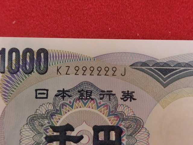 珍番 KZ222222J 1000円 日本銀行券D号 夏目漱石 黒色 ピン札 NO-1008