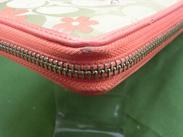 【良品】コーチ 長財布 財布 花柄 ベージュ ピンク レディース