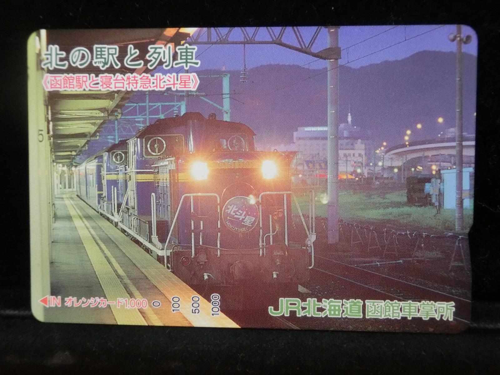 -----------------------商品説明-----------------------■品物 オレンジカード 未使用 ■額面 1000円 ■状態 画像をご確認ください。 ■在庫 在庫については、店舗販売もしておりますので、 ご注文頂いた全てをご用意できない場合もございます。 カートに在庫がない場合にもお問い合わせいただければご相談をお受けいたします。 ■オレンジカードとは JR各社で利用できる磁気式プリペイドカードである。略称でオレカとも呼ばれる。 日本国有鉄道(国鉄)時代の1985年3月25日に関東圏の主要駅で販売が開始されたのち、 全国で発売された。2013年3月31日限りで発売を終了した。 ◎概要 1971年(昭和46年)に研究と開発を開始。マルス105開発や国鉄経営難等もあって開発は数回中断している。 1984年(昭和59年)、JNRカードの開発と同時期に再度開発をスタート。 当時からICカード化にも意欲を見せていたが、この時は断念している。 開発プロジェクトのリーダーは、当初から須田寬(後に常務理事を経てJR東海の初代社長)が担当している。 オレンジカード対応の自動券売機で乗車券(切符)類の購入に利用できる。 また、オレンジカード対応の自動精算機や有人改札の窓口処理機で乗り越し精算にも利用できる。 もっとも、イオカード・Jスルーカード・ワイワイカード(以上いずれも発売終了)のように、 自動改札機に直接投入して自動精算することはできない。 JRの駅のみどりの窓口やカード発売機のほか、一部のデパートで購入することができた。 また、JRの一部特急列車でもオレンジカード発売の案内放送があれば車掌から購入することが可能で、 その中には車内販売限定オリジナルデザインのものもあった。 新幹線のみが停車する山陽新幹線の新神戸駅、北陸新幹線の安中榛名駅や 東北新幹線のいわて沼宮内駅・二戸駅・八戸駅・七戸十和田駅・東海道新幹線の新富士駅、 在来線の無人駅およびみどりの窓口非設置駅では、オレンジカード対応の自動券売機が設置されていないため、 オレンジカードを使用しての乗車券類の購入はできない。 ただし、新幹線のみが停車する軽井沢駅・上田駅・上毛高原駅や、一部のみどりの窓口非設置駅などでは、 オレンジカード対応の自動券売機が設置されている場合がある。 無人駅が多い鶴見線や青梅線の各駅にもオレンジカード対応の自動券売機が設置されていたが、 鶴見線は鶴見駅を除く全駅が2022年2月28日に、 青梅線は一部の駅を除き2017年から2018年にかけて自動券売機が撤去され、利用ができなくなった。 みどりの窓口設置駅でありながら他社管理駅である小諸駅(しなの鉄道管理駅)、 八戸駅(在来線は青い森鉄道管理駅)と自動券売機非設置の左沢駅などでは使用することができない。 オレンジカードで購入した乗車券類は、みどりの窓口[注 2]で乗車変更の取り扱いが可能である。 他の乗車カード類の場合も共通するが、 オレンジカードで他のオレンジカードや他のJRの磁気式乗車カード(イオカード)などを購入したり、 Suica・ICOCA・TOICA・Kitaca・SUGOCAのJRの 非接触型ICカードを購入したりチャージ(現金積み増し)したりすることはできない。 また車内精算で使用することもできない。 以前はクレジットカードでの購入も可能だったが、北海道旅客鉄道(JR北海道)では2003年6月20日から、 東日本旅客鉄道(JR東日本)では2005年ごろから(ビューカードは最後まで購入可能だった)、 JR九州、JR四国、JR西日本も段階的に購入が不可能となった。 これは、クレジットカードを盗んだ者がオレンジカードを購入、 金券ショップで換金することで現金を得るという不正行為を行っており、これを防ぐことが目的であった。 ◎発売終了 JR東日本の首都圏エリアでは1991年3月1日にイオカードが発売開始され、 そして2001年11月18日にSuicaの販売を開始した。 これらのカードは自動券売機で乗車券に引き換えることなくカード自体に対して 自動改札機による改札処理を行うことが可能でありオレンジカードに代わり普及し、 JR東日本ではオレンジカードの売上はピーク時の1991年には327億円あったが、 2006年には13億円に減少した。 また他のJR各社も1990年代以降、自社独自の磁気式ストアードフェアカードやICカードを発売開始している。 JR西日本(西日本旅客鉄道)では、新幹線単独駅に設置されている一部の券売機を除いてオレンジカードが使用可能であり、 在来線扱いの博多南線博多南駅でも使用できる。 ICOCA・Jスルーエリアの小規模の駅で取扱いをやめている。 一部の駅の出札窓口でも専用の処理機を使う事で利用することができた時期もある。 ただし、一部の駅ではオレンジカード対応券売機が設置されていない。 このため、オレンジカード対応の自動券売機が更新されないケースや、 オレンジカードを発売していない駅も出てきている。 しかし、当時ICOCAの導入予定を公式発表していなかった北陸地方と山口県内や山陰地方では、 2008年頃まで記念カードも発行されていた。 また、2011年頃でも、JR北海道[注 3]とJR四国[