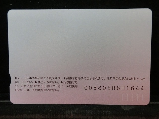 -----------------------商品説明-----------------------■品物 オレンジカード 未使用 ■額面 1000円 ■状態 画像をご確認ください。 ■在庫 在庫については、店舗販売もしておりますので、 ご注文頂いた全てをご用意できない場合もございます。 カートに在庫がない場合にもお問い合わせいただければご相談をお受けいたします。 ■オレンジカードとは JR各社で利用できる磁気式プリペイドカードである。略称でオレカとも呼ばれる。 日本国有鉄道(国鉄)時代の1985年3月25日に関東圏の主要駅で販売が開始されたのち、 全国で発売された。2013年3月31日限りで発売を終了した。 ◎概要 1971年(昭和46年)に研究と開発を開始。マルス105開発や国鉄経営難等もあって開発は数回中断している。 1984年(昭和59年)、JNRカードの開発と同時期に再度開発をスタート。 当時からICカード化にも意欲を見せていたが、この時は断念している。 開発プロジェクトのリーダーは、当初から須田寬(後に常務理事を経てJR東海の初代社長)が担当している。 オレンジカード対応の自動券売機で乗車券(切符)類の購入に利用できる。 また、オレンジカード対応の自動精算機や有人改札の窓口処理機で乗り越し精算にも利用できる。 もっとも、イオカード・Jスルーカード・ワイワイカード(以上いずれも発売終了)のように、 自動改札機に直接投入して自動精算することはできない。 JRの駅のみどりの窓口やカード発売機のほか、一部のデパートで購入することができた。 また、JRの一部特急列車でもオレンジカード発売の案内放送があれば車掌から購入することが可能で、 その中には車内販売限定オリジナルデザインのものもあった。 新幹線のみが停車する山陽新幹線の新神戸駅、北陸新幹線の安中榛名駅や 東北新幹線のいわて沼宮内駅・二戸駅・八戸駅・七戸十和田駅・東海道新幹線の新富士駅、 在来線の無人駅およびみどりの窓口非設置駅では、オレンジカード対応の自動券売機が設置されていないため、 オレンジカードを使用しての乗車券類の購入はできない。 ただし、新幹線のみが停車する軽井沢駅・上田駅・上毛高原駅や、一部のみどりの窓口非設置駅などでは、 オレンジカード対応の自動券売機が設置されている場合がある。 無人駅が多い鶴見線や青梅線の各駅にもオレンジカード対応の自動券売機が設置されていたが、 鶴見線は鶴見駅を除く全駅が2022年2月28日に、 青梅線は一部の駅を除き2017年から2018年にかけて自動券売機が撤去され、利用ができなくなった。 みどりの窓口設置駅でありながら他社管理駅である小諸駅(しなの鉄道管理駅)、 八戸駅(在来線は青い森鉄道管理駅)と自動券売機非設置の左沢駅などでは使用することができない。 オレンジカードで購入した乗車券類は、みどりの窓口[注 2]で乗車変更の取り扱いが可能である。 他の乗車カード類の場合も共通するが、 オレンジカードで他のオレンジカードや他のJRの磁気式乗車カード(イオカード)などを購入したり、 Suica・ICOCA・TOICA・Kitaca・SUGOCAのJRの 非接触型ICカードを購入したりチャージ(現金積み増し)したりすることはできない。 また車内精算で使用することもできない。 以前はクレジットカードでの購入も可能だったが、北海道旅客鉄道(JR北海道)では2003年6月20日から、 東日本旅客鉄道(JR東日本)では2005年ごろから(ビューカードは最後まで購入可能だった)、 JR九州、JR四国、JR西日本も段階的に購入が不可能となった。 これは、クレジットカードを盗んだ者がオレンジカードを購入、 金券ショップで換金することで現金を得るという不正行為を行っており、これを防ぐことが目的であった。 ◎発売終了 JR東日本の首都圏エリアでは1991年3月1日にイオカードが発売開始され、 そして2001年11月18日にSuicaの販売を開始した。 これらのカードは自動券売機で乗車券に引き換えることなくカード自体に対して 自動改札機による改札処理を行うことが可能でありオレンジカードに代わり普及し、 JR東日本ではオレンジカードの売上はピーク時の1991年には327億円あったが、 2006年には13億円に減少した。 また他のJR各社も1990年代以降、自社独自の磁気式ストアードフェアカードやICカードを発売開始している。 JR西日本(西日本旅客鉄道)では、新幹線単独駅に設置されている一部の券売機を除いてオレンジカードが使用可能であり、 在来線扱いの博多南線博多南駅でも使用できる。 ICOCA・Jスルーエリアの小規模の駅で取扱いをやめている。 一部の駅の出札窓口でも専用の処理機を使う事で利用することができた時期もある。 ただし、一部の駅ではオレンジカード対応券売機が設置されていない。 このため、オレンジカード対応の自動券売機が更新されないケースや、 オレンジカードを発売していない駅も出てきている。 しかし、当時ICOCAの導入予定を公式発表していなかった北陸地方と山口県内や山陰地方では、 2008年頃まで記念カードも発行されていた。 また、2011年頃でも、JR北海道[注 3]とJR四国[