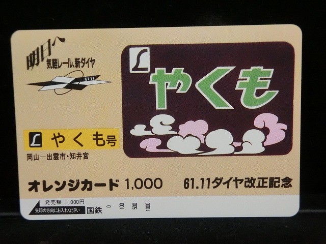 | オレンジカード 未使用 鉄道 国鉄 ヘッドマーク やくも NO-0070 | ||||