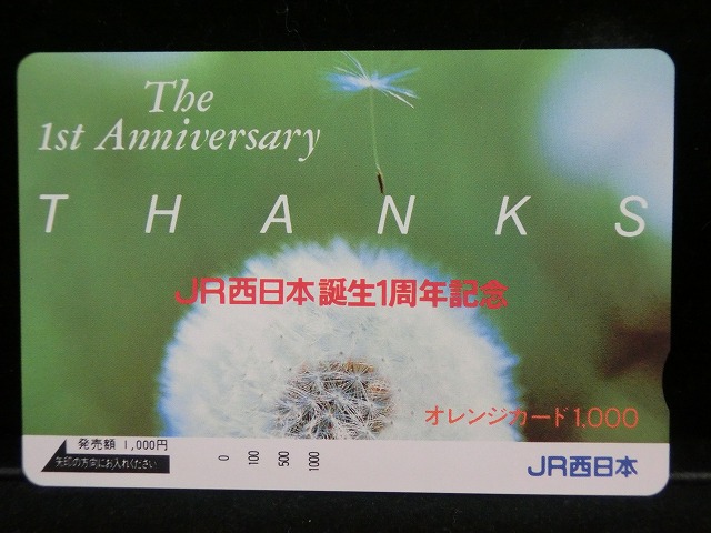 | オレンジカード 未使用 鉄道 JR 西日本 誕生1周年 NO-0150 | ||||