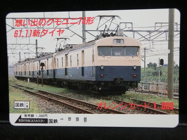 | オレンジカード 未使用 国鉄 クモユニ74形 電車-0046 | ||||