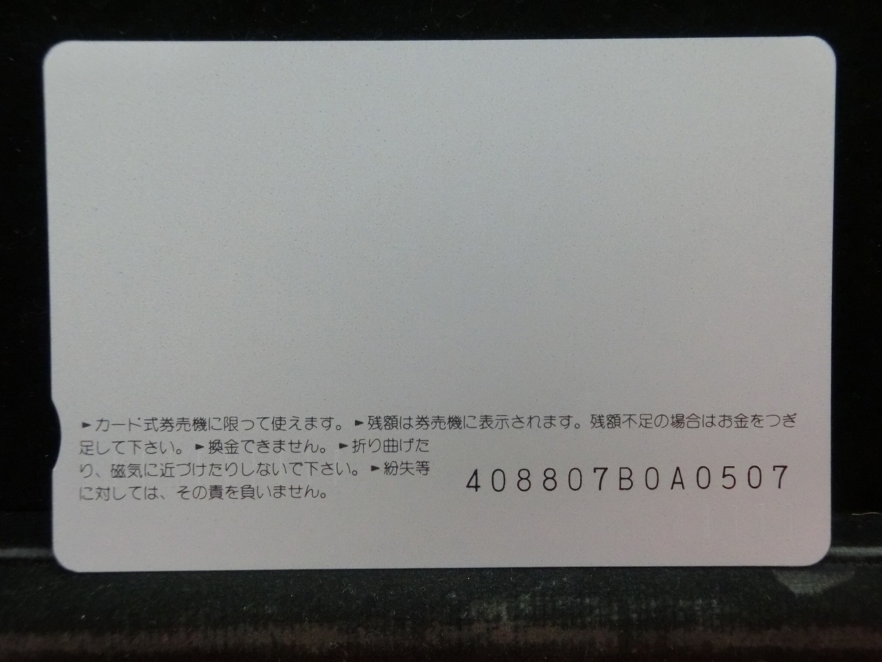 -----------------------商品説明-----------------------■品物 オレンジカード 未使用 ■額面 1000円 ■状態 画像をご確認ください。 ■在庫 在庫については、店舗販売もしておりますので、 ご注文頂いた全てをご用意できない場合もございます。 カートに在庫がない場合にもお問い合わせいただければご相談をお受けいたします。 ■オレンジカードとは JR各社で利用できる磁気式プリペイドカードである。略称でオレカとも呼ばれる。 日本国有鉄道(国鉄)時代の1985年3月25日に関東圏の主要駅で販売が開始されたのち、 全国で発売された。2013年3月31日限りで発売を終了した。 ◎概要 1971年(昭和46年)に研究と開発を開始。マルス105開発や国鉄経営難等もあって開発は数回中断している。 1984年(昭和59年)、JNRカードの開発と同時期に再度開発をスタート。 当時からICカード化にも意欲を見せていたが、この時は断念している。 開発プロジェクトのリーダーは、当初から須田寬(後に常務理事を経てJR東海の初代社長)が担当している。 オレンジカード対応の自動券売機で乗車券(切符)類の購入に利用できる。 また、オレンジカード対応の自動精算機や有人改札の窓口処理機で乗り越し精算にも利用できる。 もっとも、イオカード・Jスルーカード・ワイワイカード(以上いずれも発売終了)のように、 自動改札機に直接投入して自動精算することはできない。 JRの駅のみどりの窓口やカード発売機のほか、一部のデパートで購入することができた。 また、JRの一部特急列車でもオレンジカード発売の案内放送があれば車掌から購入することが可能で、 その中には車内販売限定オリジナルデザインのものもあった。 新幹線のみが停車する山陽新幹線の新神戸駅、北陸新幹線の安中榛名駅や 東北新幹線のいわて沼宮内駅・二戸駅・八戸駅・七戸十和田駅・東海道新幹線の新富士駅、 在来線の無人駅およびみどりの窓口非設置駅では、オレンジカード対応の自動券売機が設置されていないため、 オレンジカードを使用しての乗車券類の購入はできない。 ただし、新幹線のみが停車する軽井沢駅・上田駅・上毛高原駅や、一部のみどりの窓口非設置駅などでは、 オレンジカード対応の自動券売機が設置されている場合がある。 無人駅が多い鶴見線や青梅線の各駅にもオレンジカード対応の自動券売機が設置されていたが、 鶴見線は鶴見駅を除く全駅が2022年2月28日に、 青梅線は一部の駅を除き2017年から2018年にかけて自動券売機が撤去され、利用ができなくなった。 みどりの窓口設置駅でありながら他社管理駅である小諸駅(しなの鉄道管理駅)、 八戸駅(在来線は青い森鉄道管理駅)と自動券売機非設置の左沢駅などでは使用することができない。 オレンジカードで購入した乗車券類は、みどりの窓口[注 2]で乗車変更の取り扱いが可能である。 他の乗車カード類の場合も共通するが、 オレンジカードで他のオレンジカードや他のJRの磁気式乗車カード(イオカード)などを購入したり、 Suica・ICOCA・TOICA・Kitaca・SUGOCAのJRの 非接触型ICカードを購入したりチャージ(現金積み増し)したりすることはできない。 また車内精算で使用することもできない。 以前はクレジットカードでの購入も可能だったが、北海道旅客鉄道(JR北海道)では2003年6月20日から、 東日本旅客鉄道(JR東日本)では2005年ごろから(ビューカードは最後まで購入可能だった)、 JR九州、JR四国、JR西日本も段階的に購入が不可能となった。 これは、クレジットカードを盗んだ者がオレンジカードを購入、 金券ショップで換金することで現金を得るという不正行為を行っており、これを防ぐことが目的であった。 ◎発売終了 JR東日本の首都圏エリアでは1991年3月1日にイオカードが発売開始され、 そして2001年11月18日にSuicaの販売を開始した。 これらのカードは自動券売機で乗車券に引き換えることなくカード自体に対して 自動改札機による改札処理を行うことが可能でありオレンジカードに代わり普及し、 JR東日本ではオレンジカードの売上はピーク時の1991年には327億円あったが、 2006年には13億円に減少した。 また他のJR各社も1990年代以降、自社独自の磁気式ストアードフェアカードやICカードを発売開始している。 JR西日本(西日本旅客鉄道)では、新幹線単独駅に設置されている一部の券売機を除いてオレンジカードが使用可能であり、 在来線扱いの博多南線博多南駅でも使用できる。 ICOCA・Jスルーエリアの小規模の駅で取扱いをやめている。 一部の駅の出札窓口でも専用の処理機を使う事で利用することができた時期もある。 ただし、一部の駅ではオレンジカード対応券売機が設置されていない。 このため、オレンジカード対応の自動券売機が更新されないケースや、 オレンジカードを発売していない駅も出てきている。 しかし、当時ICOCAの導入予定を公式発表していなかった北陸地方と山口県内や山陰地方では、 2008年頃まで記念カードも発行されていた。 また、2011年頃でも、JR北海道[注 3]とJR四国[